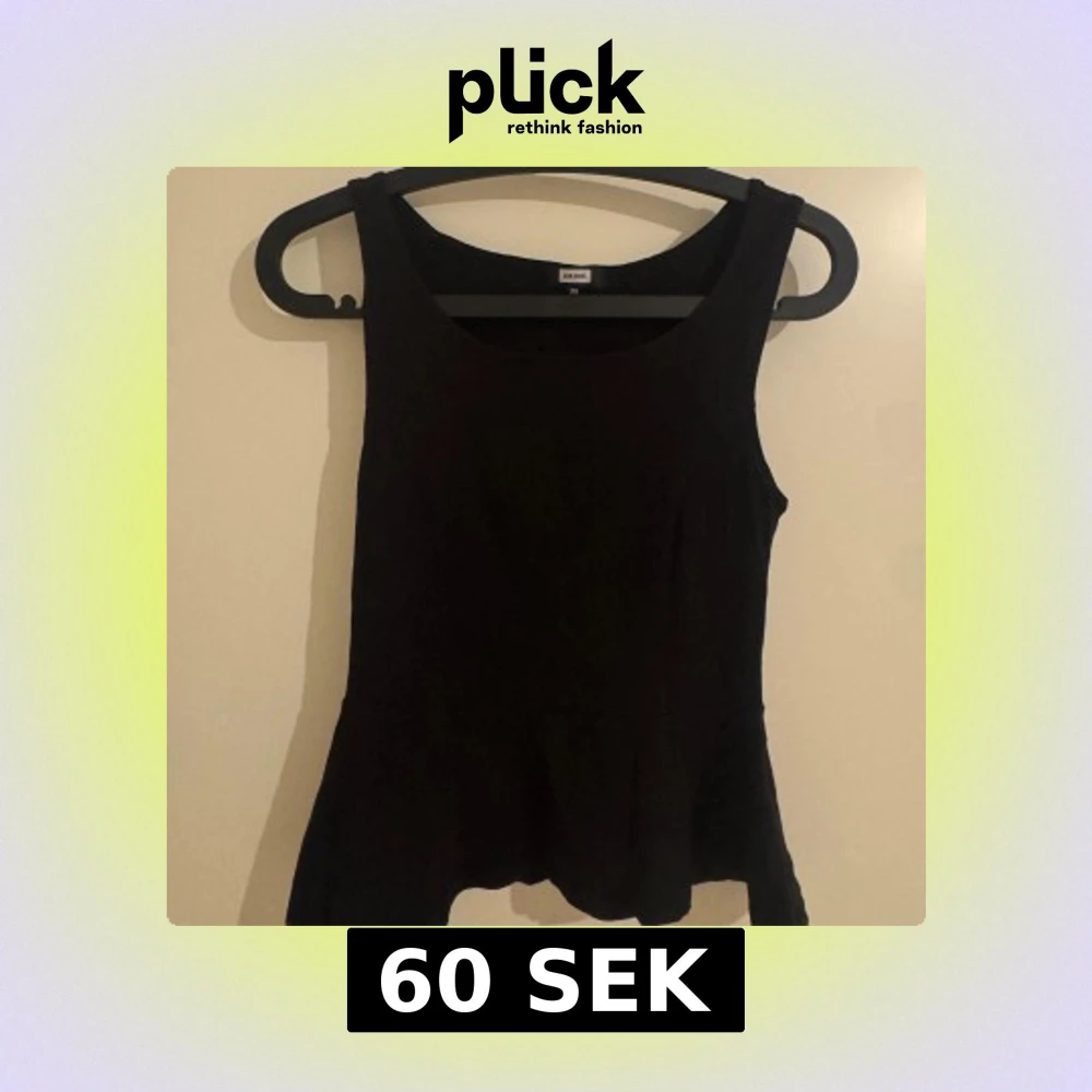 En stilren svart linnetopp från Bik Bok i storlek XS. Toppen har breda axelband, rundad halsringning och lätt utsvängd nederkant. Perfekt att matcha med jeans eller kjol för en enkel och snygg look.