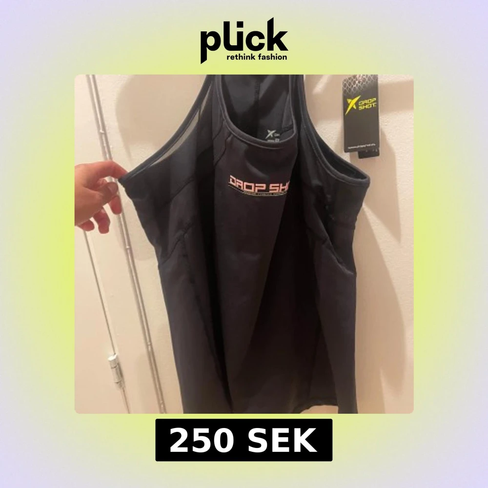 Säljer en svart linnetopp från Drop Shot, perfekt för träning. Toppen har en sportig design med brottarrygg och är tillverkad i ett lätt och andningsbart material.