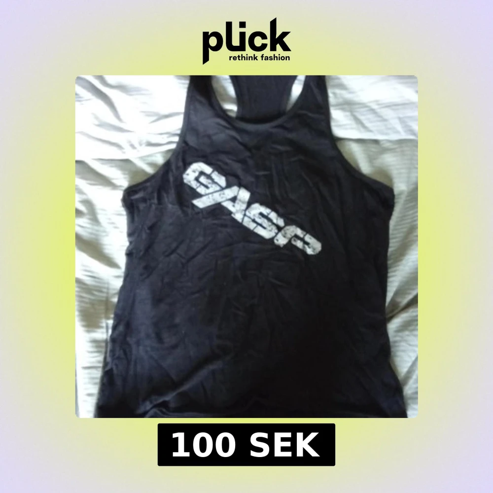 Aldrig använt. Helt nytt. Säljer en svart linnetopp från GASP med tryck på framsidan. Perfekt för träning med sin bekväma passform och stilrena design.