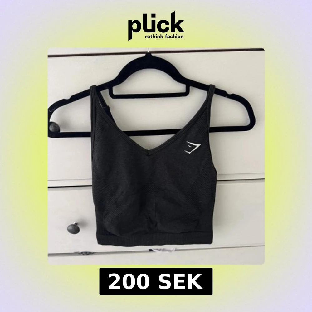 Säljer en svart linnetopp från Gymshark med smala axelband och v-ringning. Toppen har en diskret meshstruktur på sidorna och ett vitt Gymshark-logga framtill. Perfekt för träning och har en tight passform som sitter snyggt på kroppen. Har bara använt den två gånger.
