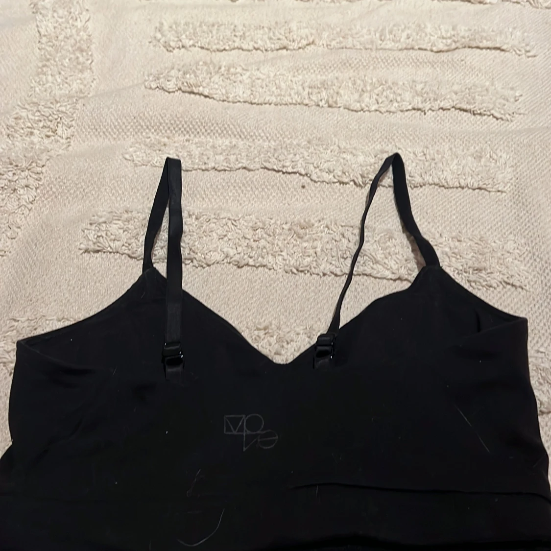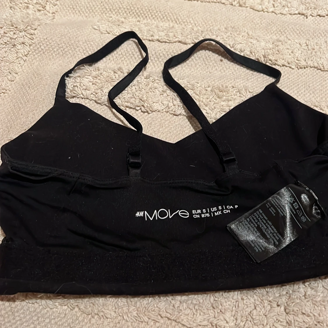 Svart linnetopp från H&M Move med smala justerbara axelband. Toppen är i mjukt och stretchigt material, perfekt för träning eller chill. Enkel och stilren design som funkar till allt.☺️