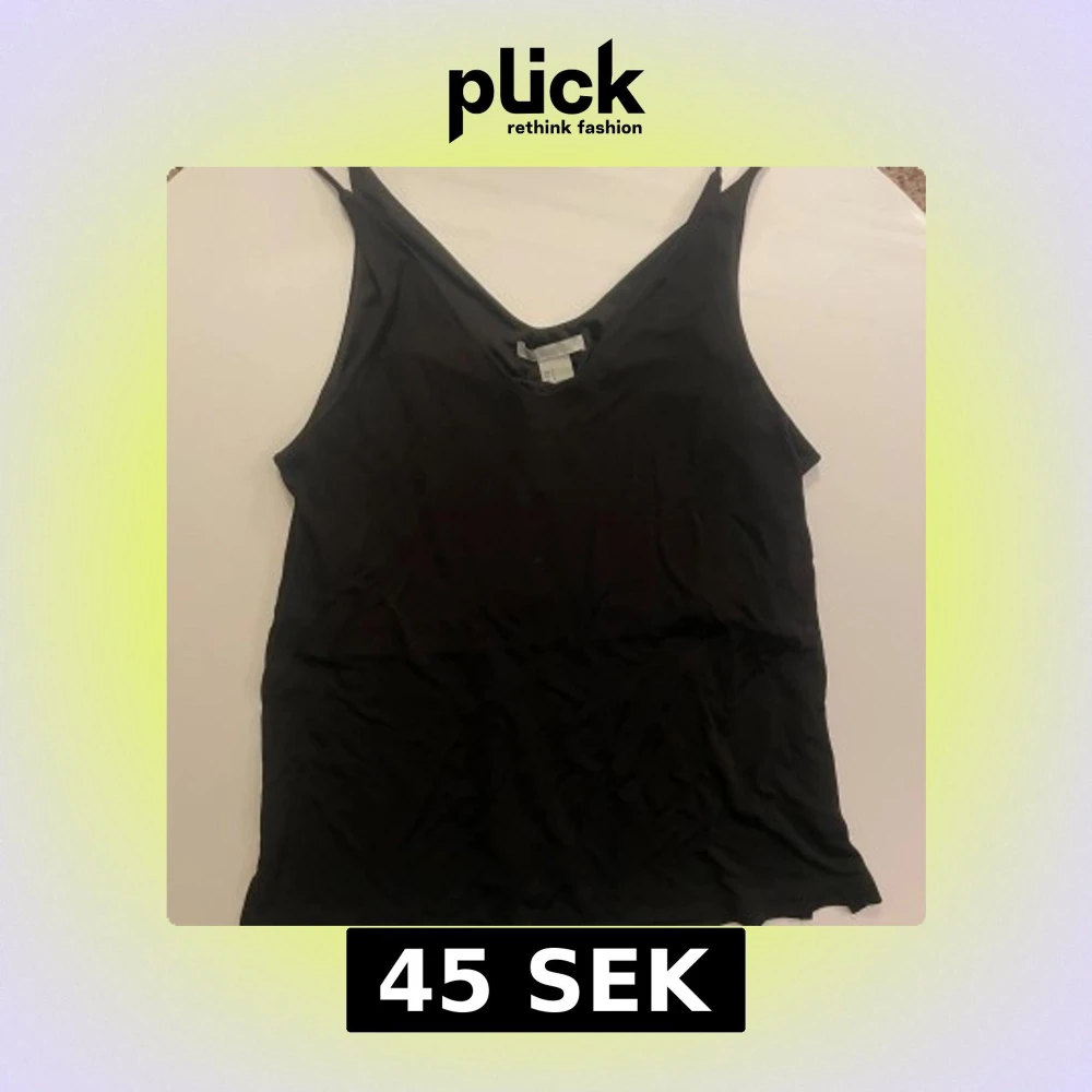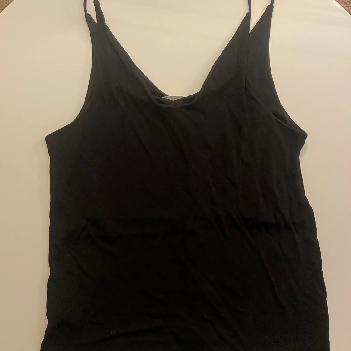 Svart linnetopp från H&M i storlek S. Toppen har smala axelband och en klassisk, enkel design med rundad halsringning. Materialet är mjukt och lätt, perfekt för varma dagar eller som layering-piece. Snygg att matcha med jeans eller kjol.
