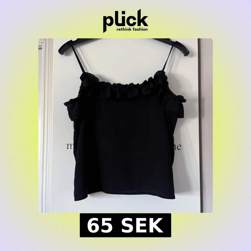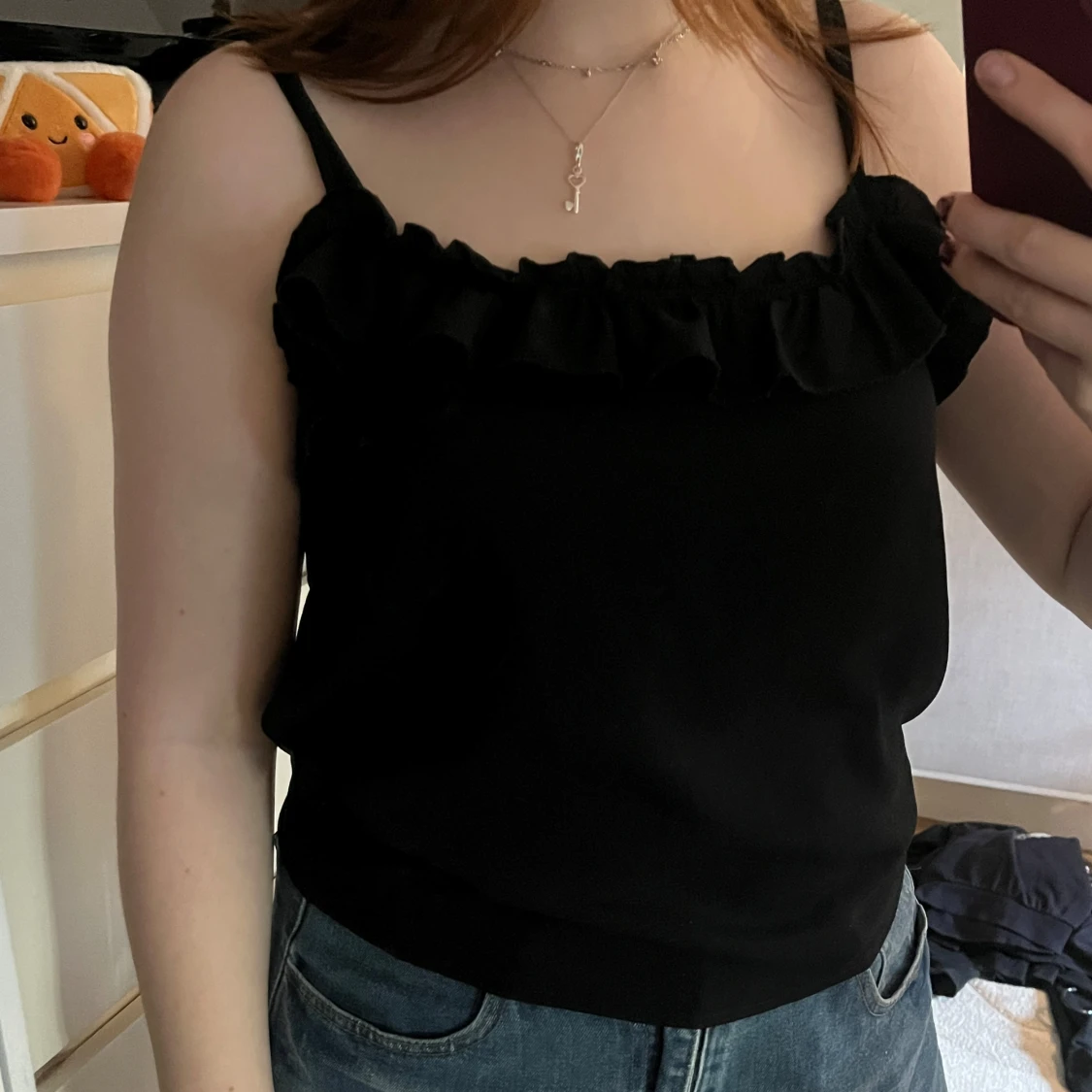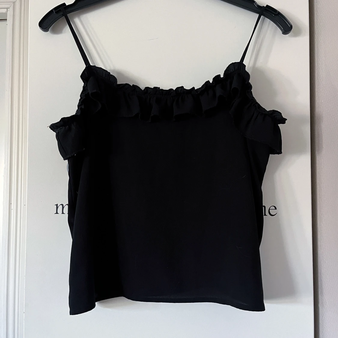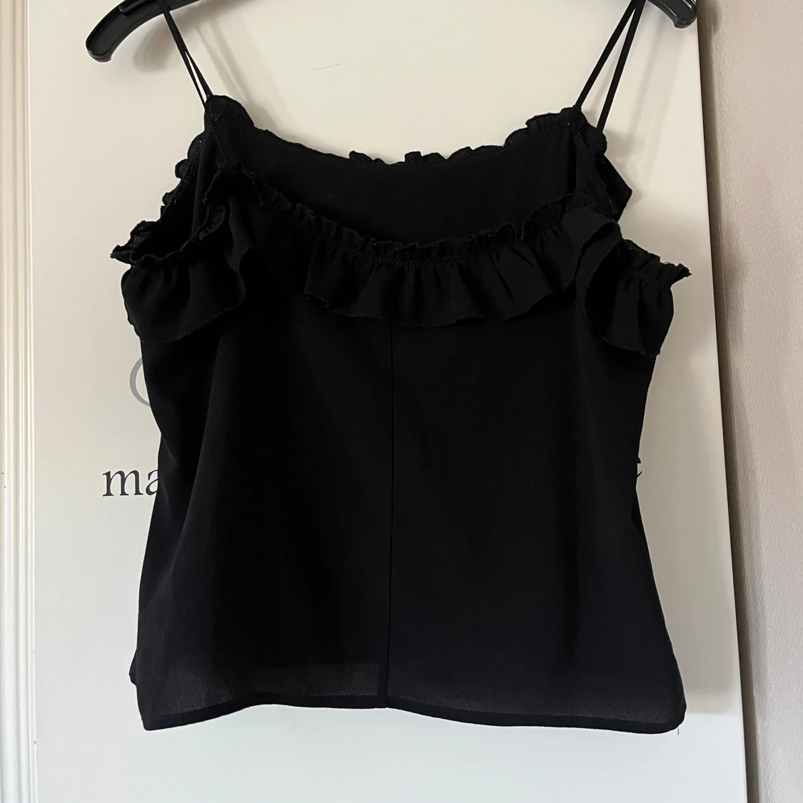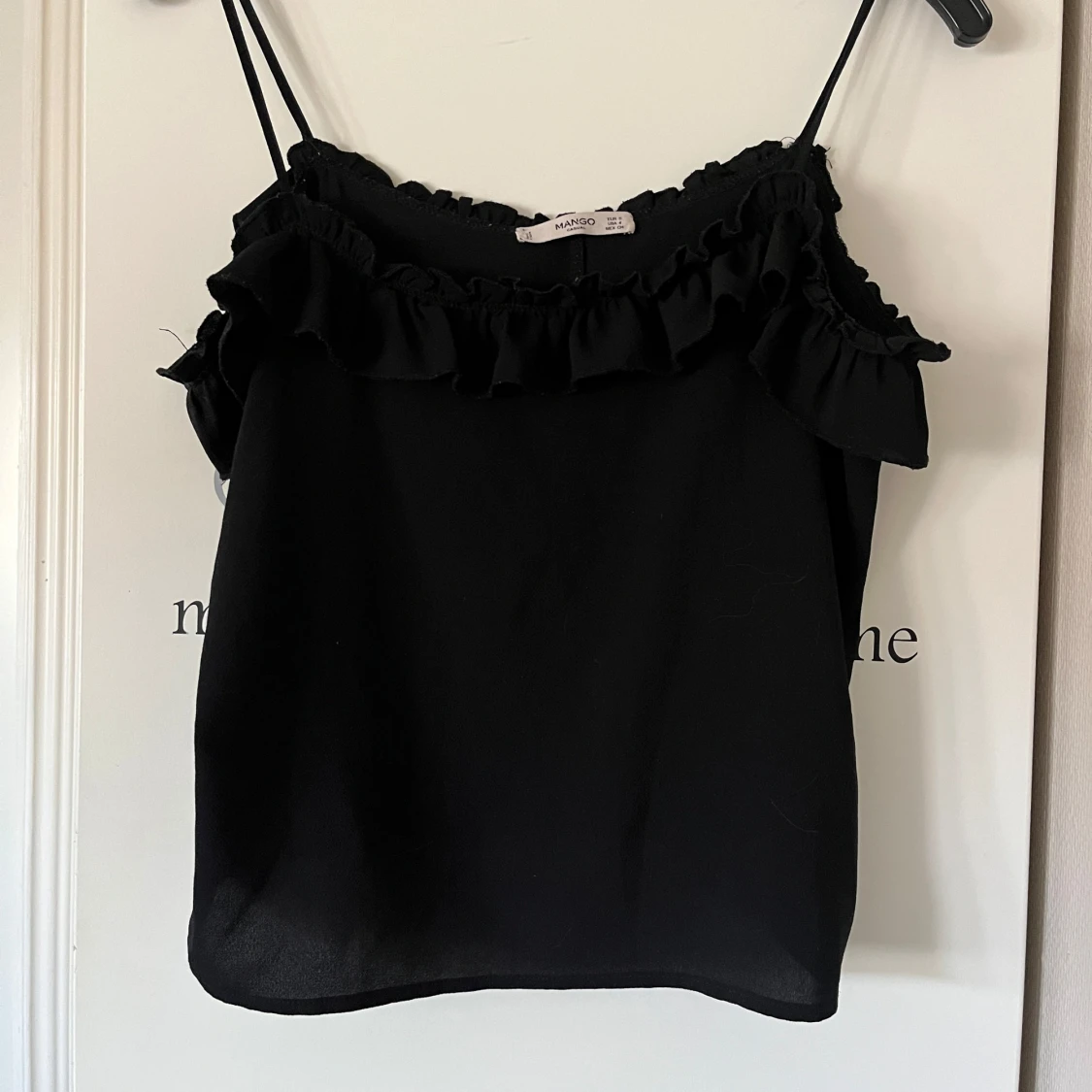 Svart linnetopp från Mango med smala axelband och volangdetaljer längs halsringningen. 🖤