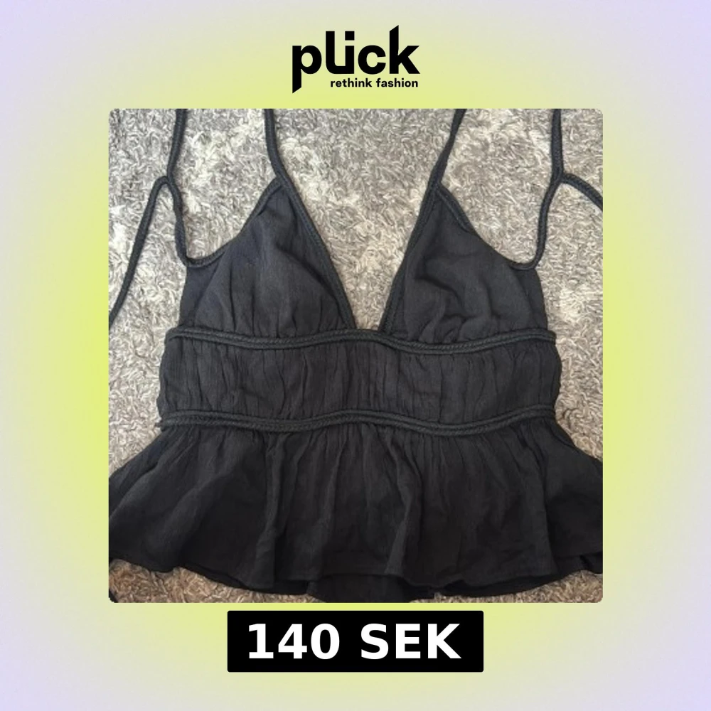 Supersöt svart linnetopp från Zara i storlek XS. Banden knyter man i ryggen💕aldrig använd då den är lite för liten för mig.