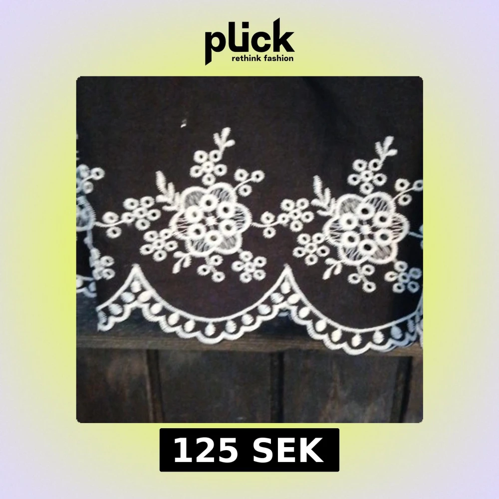 Svart linnetopp från Divided med tunna axelband som knyts. Nedtill finns vita broderade blommor och vågig kant. Toppen är ärmlös och har en söt, feminin stil som passar perfekt till sommaren.