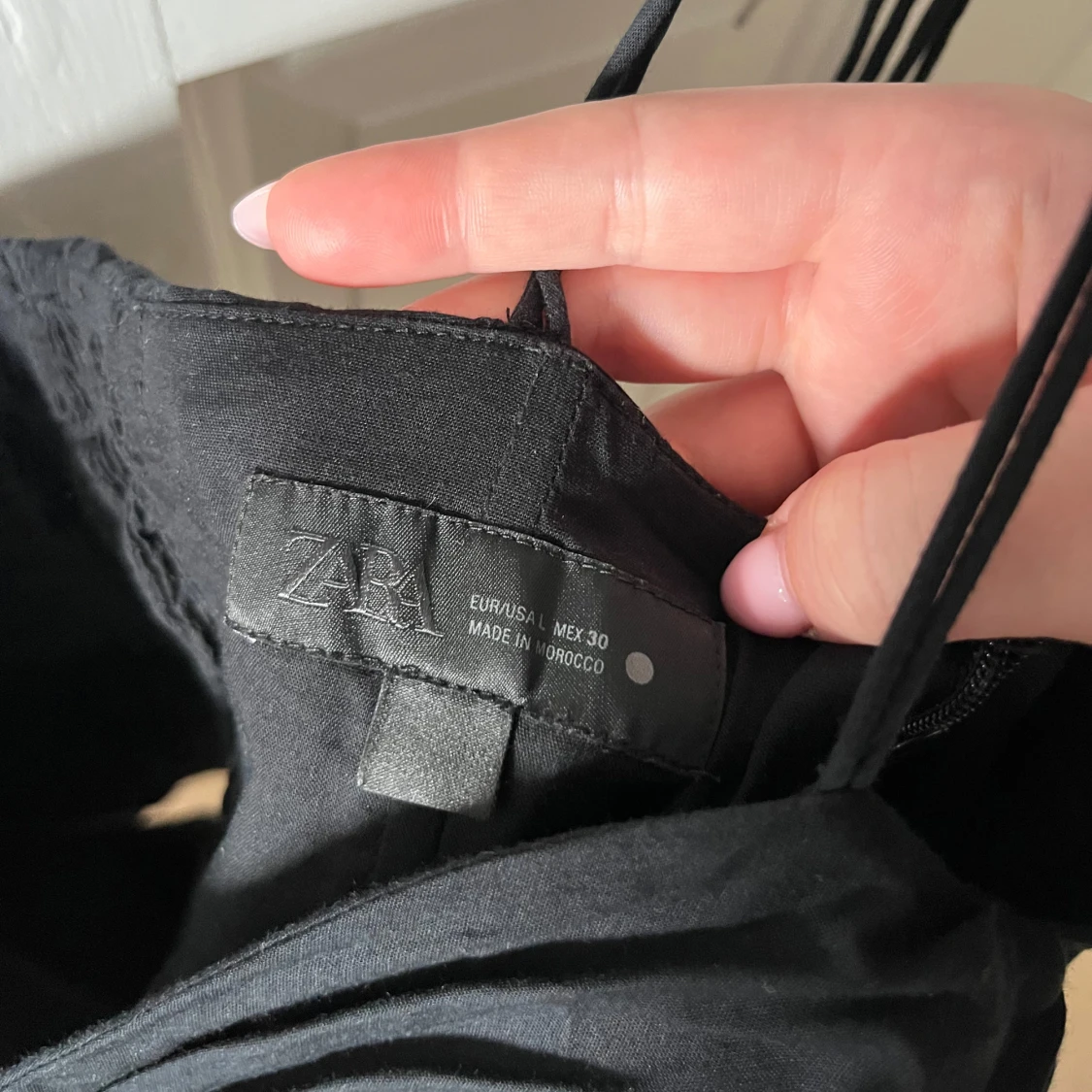 Supersnygg svart linnetopp från Zara med tunna axelband som knyts på axlarna. Perfekt att styla med jeans eller kjol. Toppen är liten i storleken och har använts två gånger🩷