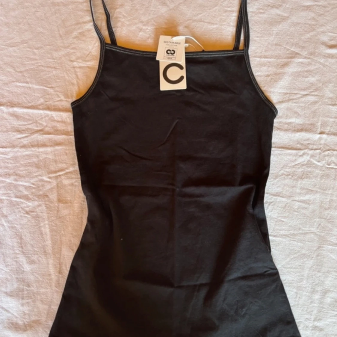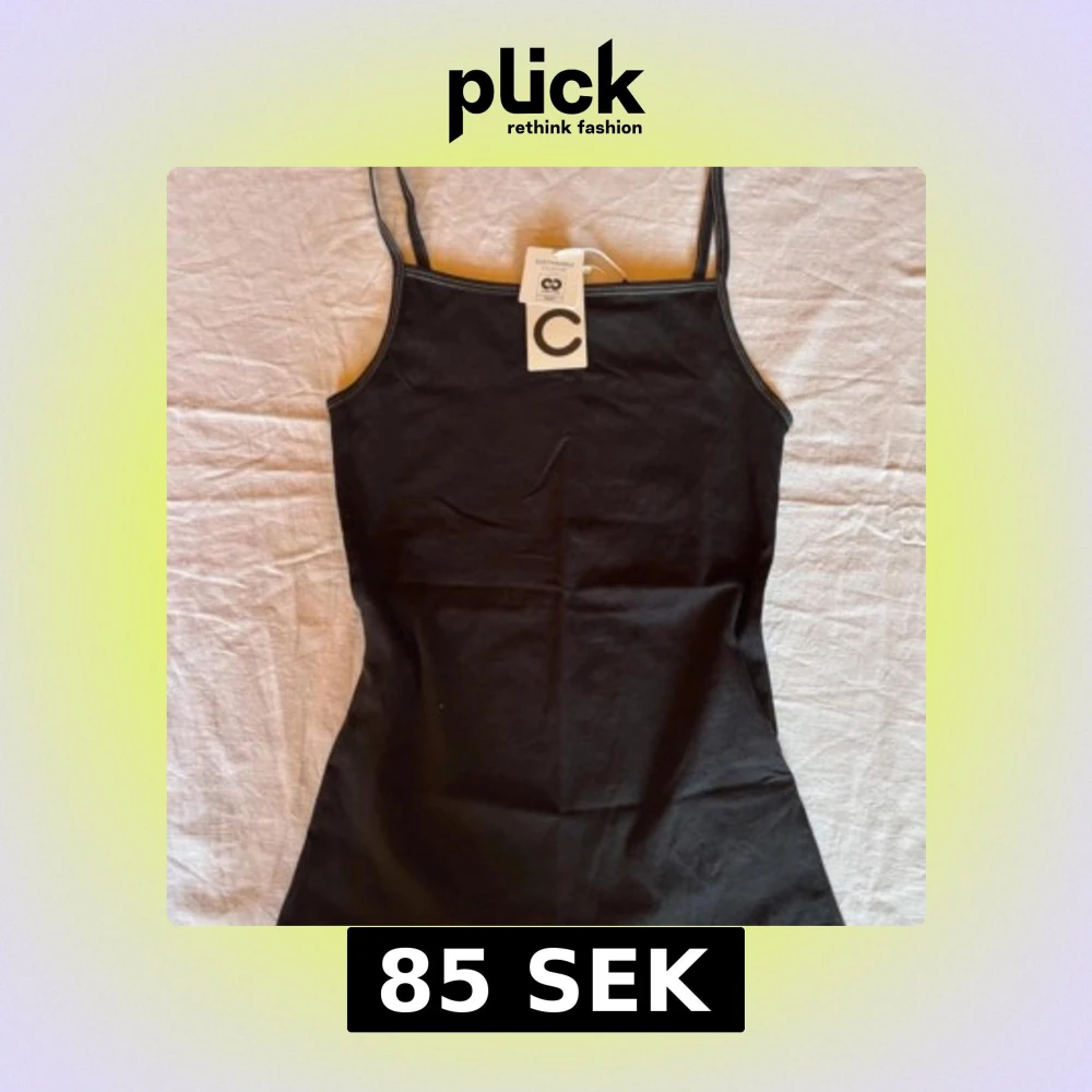 Snygg svart linnetopp med smala axelband och rak halsringning. Perfekt att styla till olika outfits och passar året runt. Enkel och stilren design.