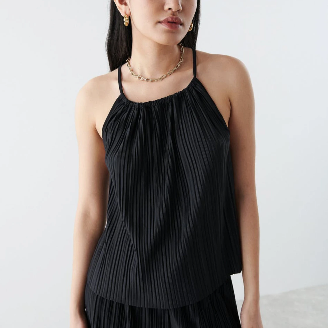 Oanvänd. Denna tröja är från Bianca Ingrosso kollektion med Gina tricot, modellen är ”Tamara singlet”. Plisserat linne med tunna axelband som korsas i ryggen. Linnet är svart och har rynkade detaljer vid halsringningen. Denna tröja säljs inte längre. Skriv till mig om du vill se hur tröjan sitter på modellen. Vänligen läs min bio innan du gör ett köp; där hittar du bland annat information om leveransprocessen med mera 😊