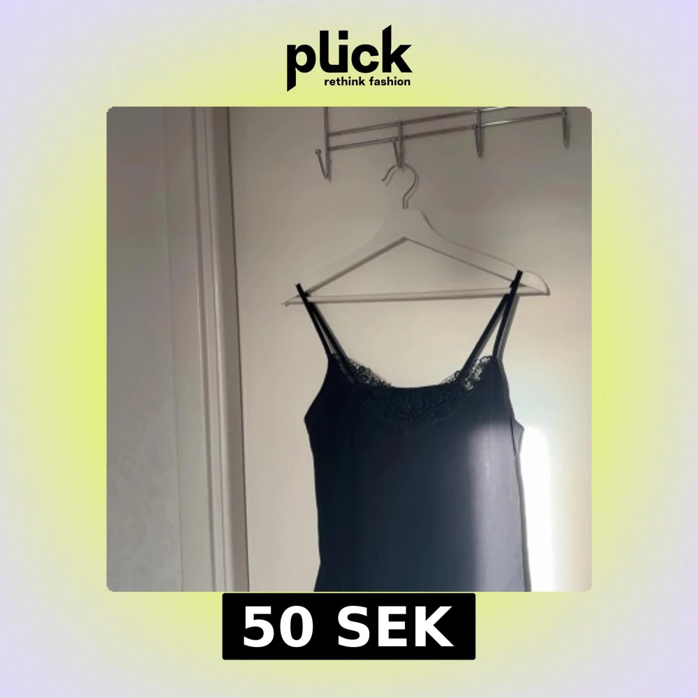 Snygg svart linnetopp med tunna axelband och dekorativ spets längs halsringningen. Toppen har en enkel och stilren design som passar perfekt till jeans eller kjol. Materialet känns mjukt och lätt mot huden, och spetsen ger en extra touch av elegans.