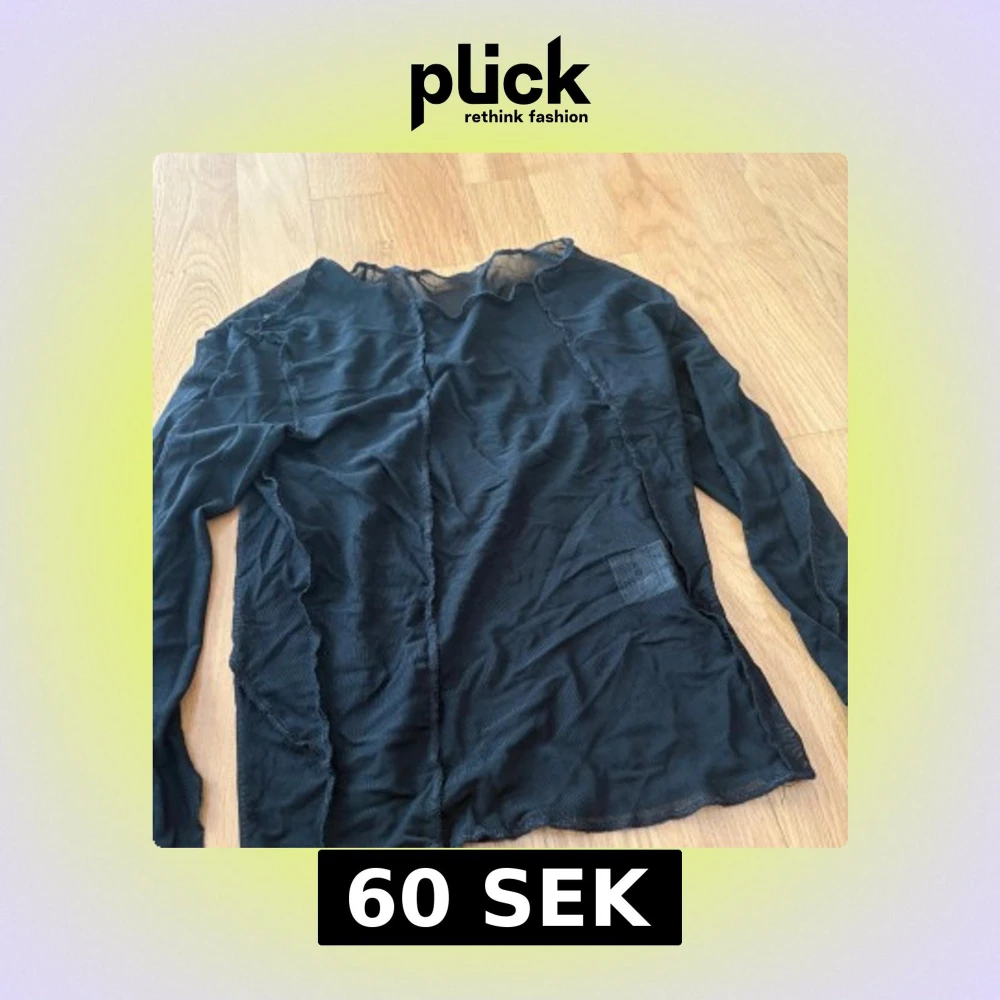 Säljer en svart mesh topp från Dazy i storlek S. Toppen är långärmad och har synliga sömmar som ger en edgy vibe. Materialet är tunt och transparent, perfekt för lager-på-lager eller att styla med ett snyggt linne under.