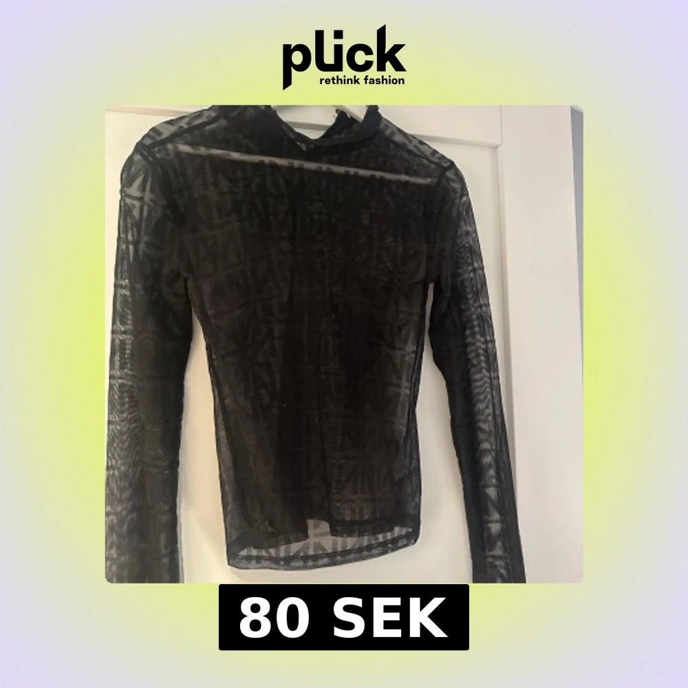 En svart långärmad topp i mesh med printade N över hela. Printer är i ett annat material, lite sammetsaktigt.