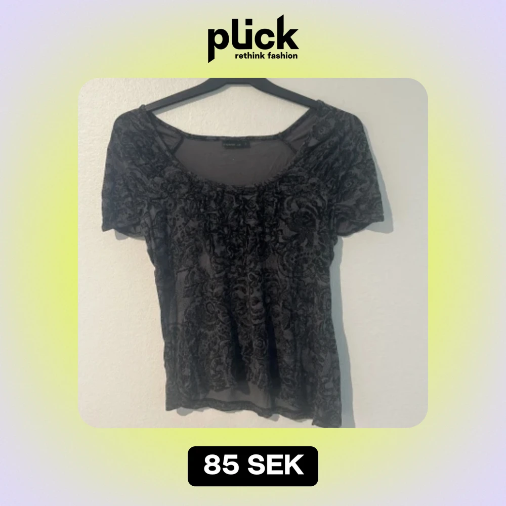 Säljer en snygg svart topp med ett detaljerat mönster. Toppen har korta ärmar och en rund halsringning. Fin deltaljering se bild 3. Använd fåtal gånger!🩷