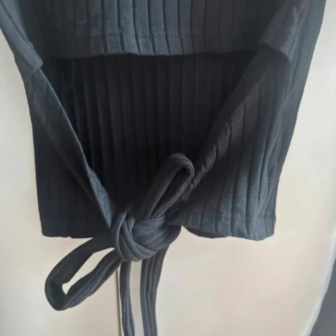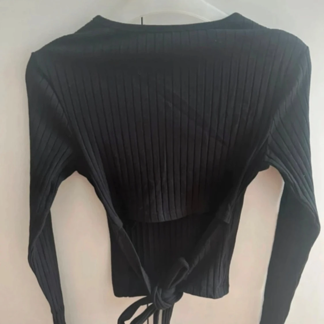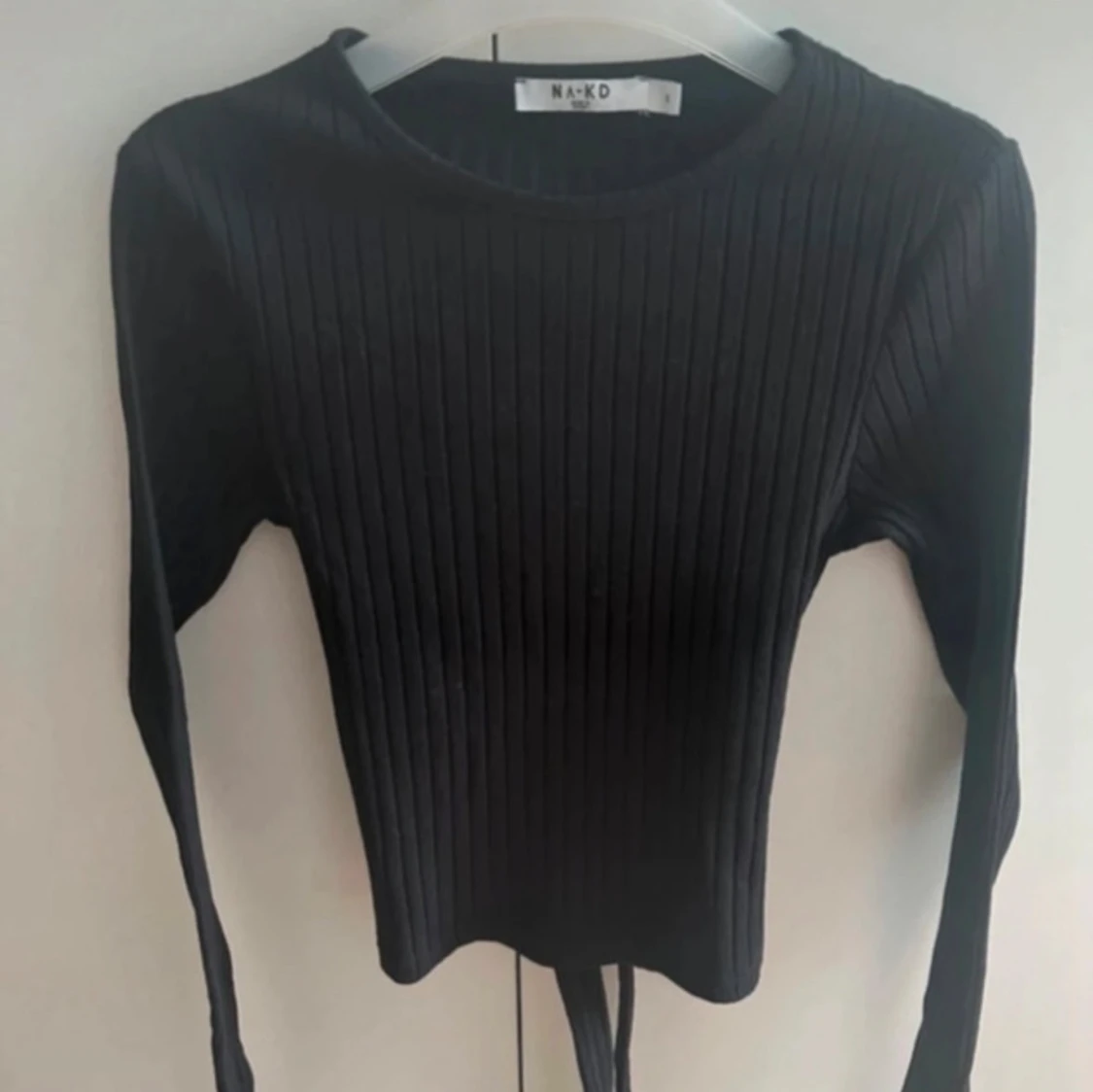 Svart långärmad topp från NA-KD med ribbad struktur och öppning i ryggen med knyts. Toppen har en tight passform och är tillverkad i mjukt material som sitter snyggt. Perfekt för dig som gillar stilrena och trendiga plagg