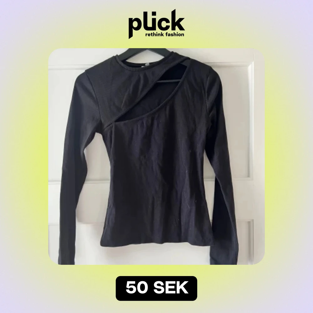 Säljer en svart ribbad topp med en cool asymmetrisk design. Den har långa ärmar och en unik skärning vid halsen som ger en edgy look. Perfekt för både vardag och fest!