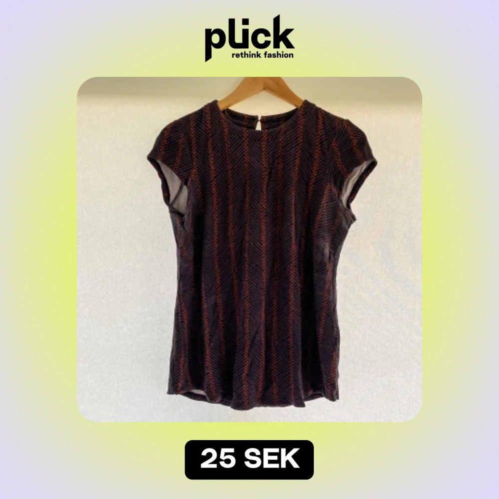 Säljer en snygg svart och röd topp från Lindex. Den har ett coolt randigt mönster och är kortärmad. Bra skick. Storlek: S. Hör av er vid eventuella frågor!!