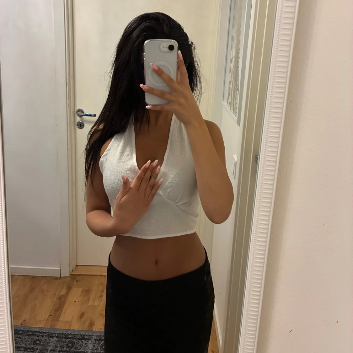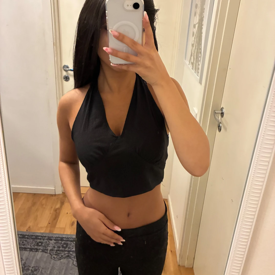 Två croppade halterneck-toppar i svart och vitt med djup v-ringning och knyt i ryggen. Snygg passform som framhäver axlarna och öppen rygg. Skriv om ni vill köpa separat.