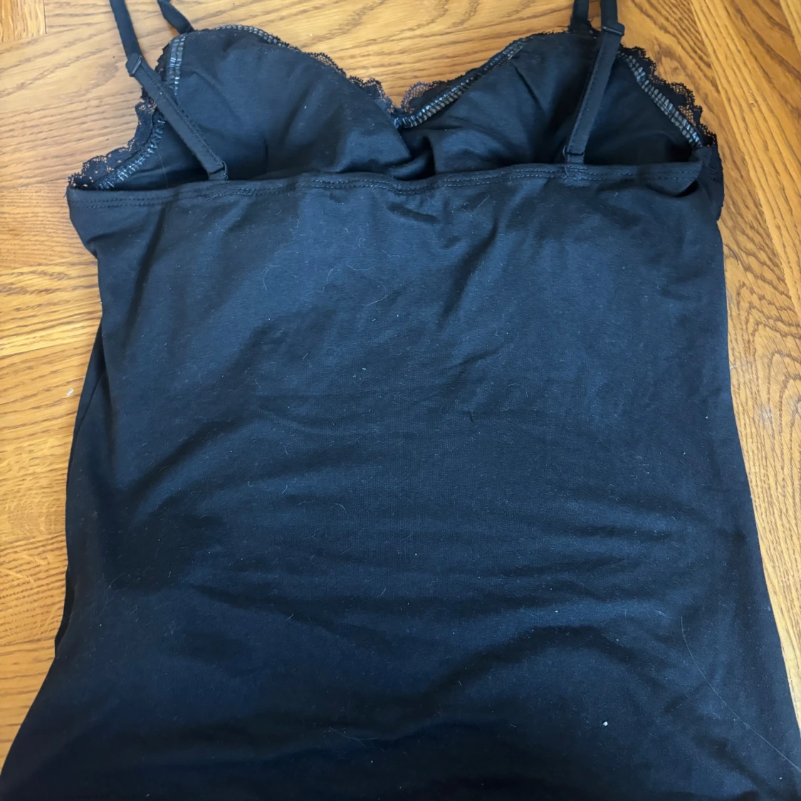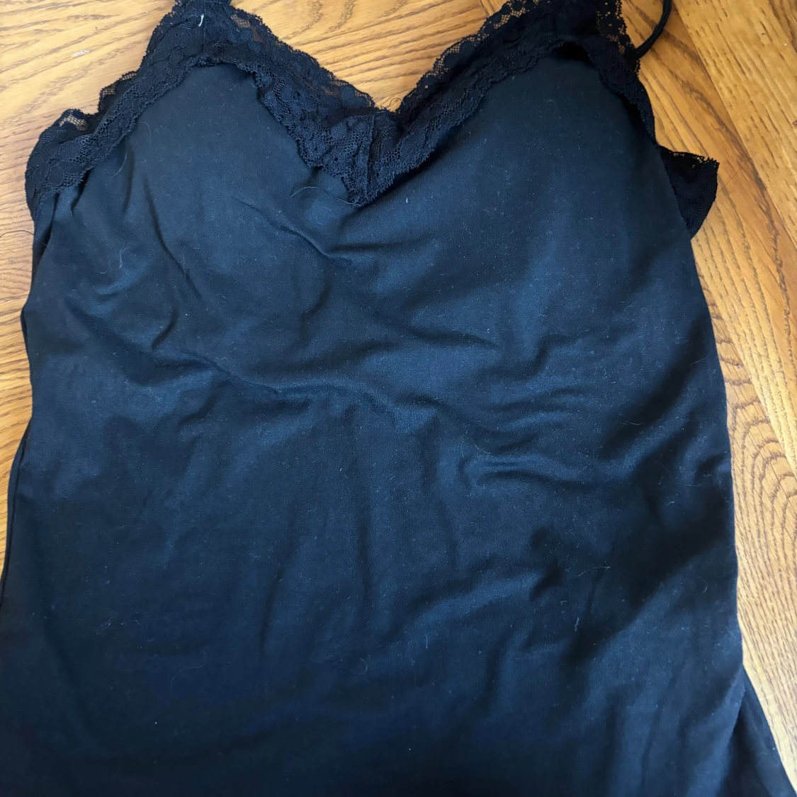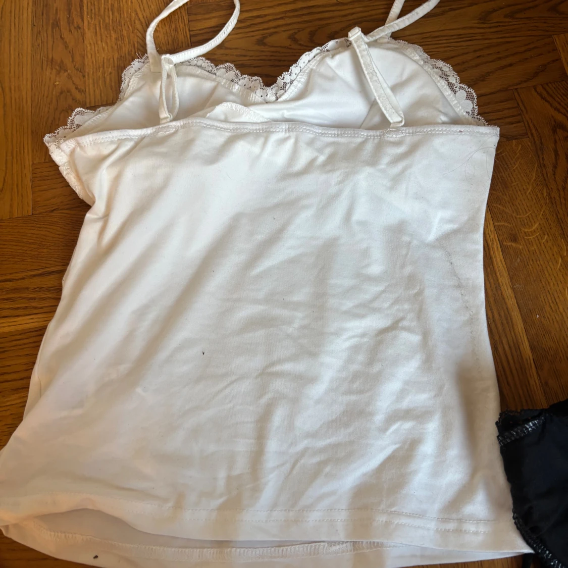Två stilrena linnetoppar i svart och vitt med tunna axelband och v-ringad spetskant upptill. Båda är i mjuk bomull och har en feminin look med spetsdetaljer längs urringningen. Perfekta att matcha med jeans eller kjol för en enkel och snygg outfit. Har bh kupor