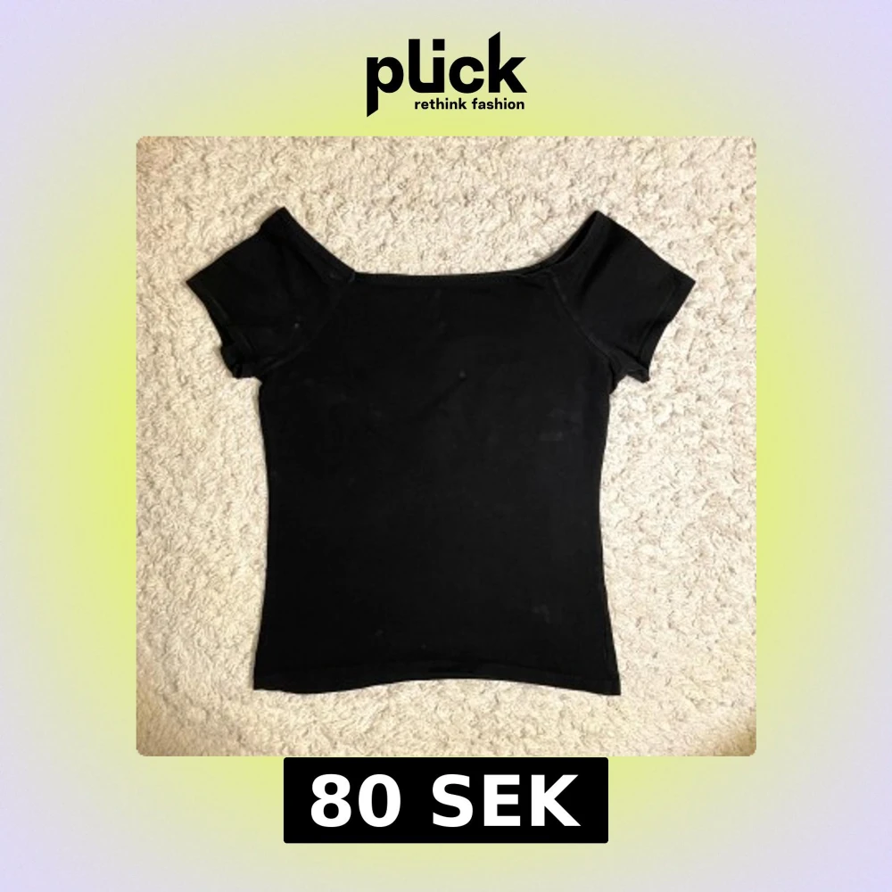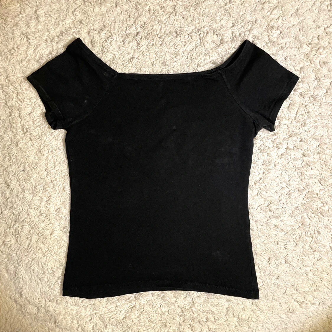 Snygg svart offshoulder topp med korta ärmar. Perfekt för en stilren look. Passar bra till både jeans och kjol.