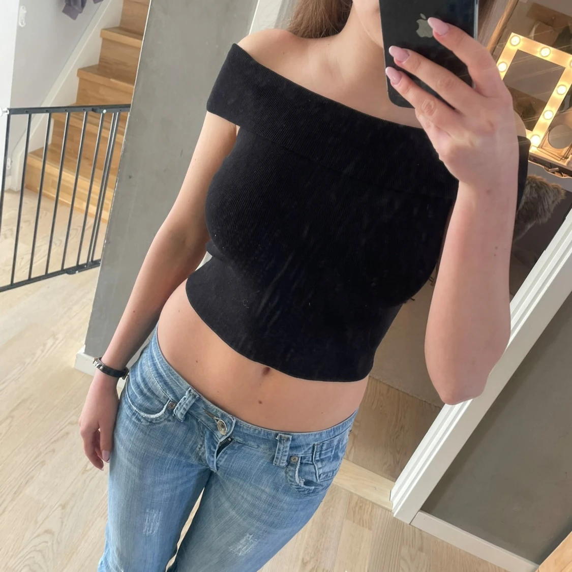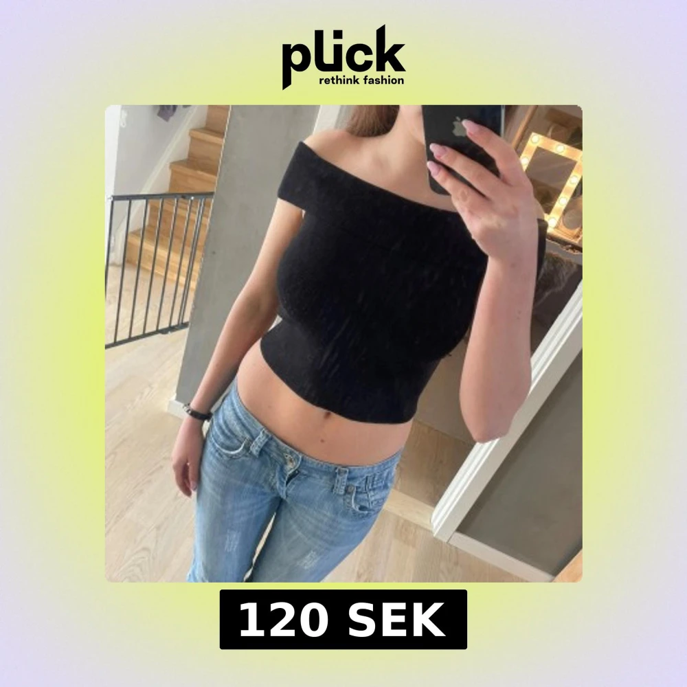 Snygg svart offshoulder topp som är croppad och tight. Perfekt för en trendig look. Aldrig använd🥰