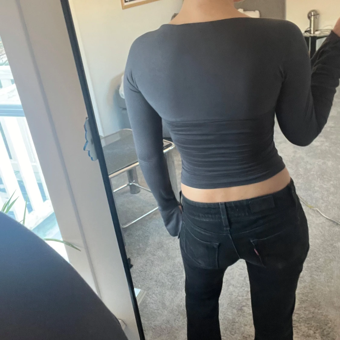 Snygg grå offshoulder topp från Gina Tricot i en tight passform. Toppen har långa ärmar och är perfekt för en stilren look. Passar bra till både jeans och kjol.