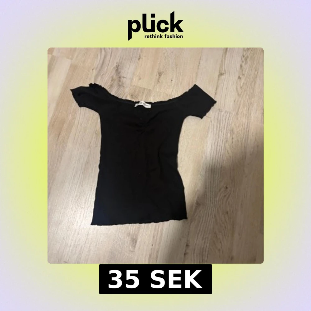 Snygg svart offshoulder topp från Sisters Point. Den har en ribbad struktur och korta ärmar, perfekt för en stilren look. Passar bra till både jeans och kjol.