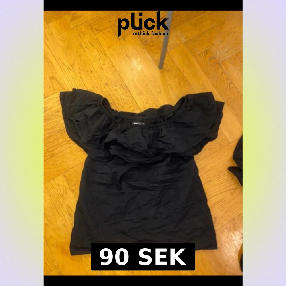 Säljer en svart offshoulder topp från Gina Tricot i storlek 34. Toppen har puffiga ärmar och en rak, loose passform. Materialet är mjukt och lätt, perfekt för att styla med jeans eller kjol. Enkel och stilren design som ger en cool vibe.