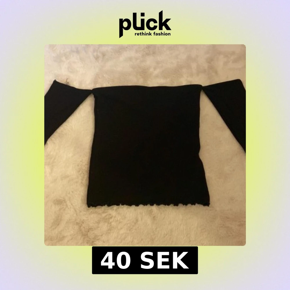 Svart offshoulder topp från Gina Tricot i storlek XS. Toppen har långa ärmar och en tight passform med vågig kant nertill. Perfekt för dig som gillar stilrena och trendiga plagg med en enkel look.