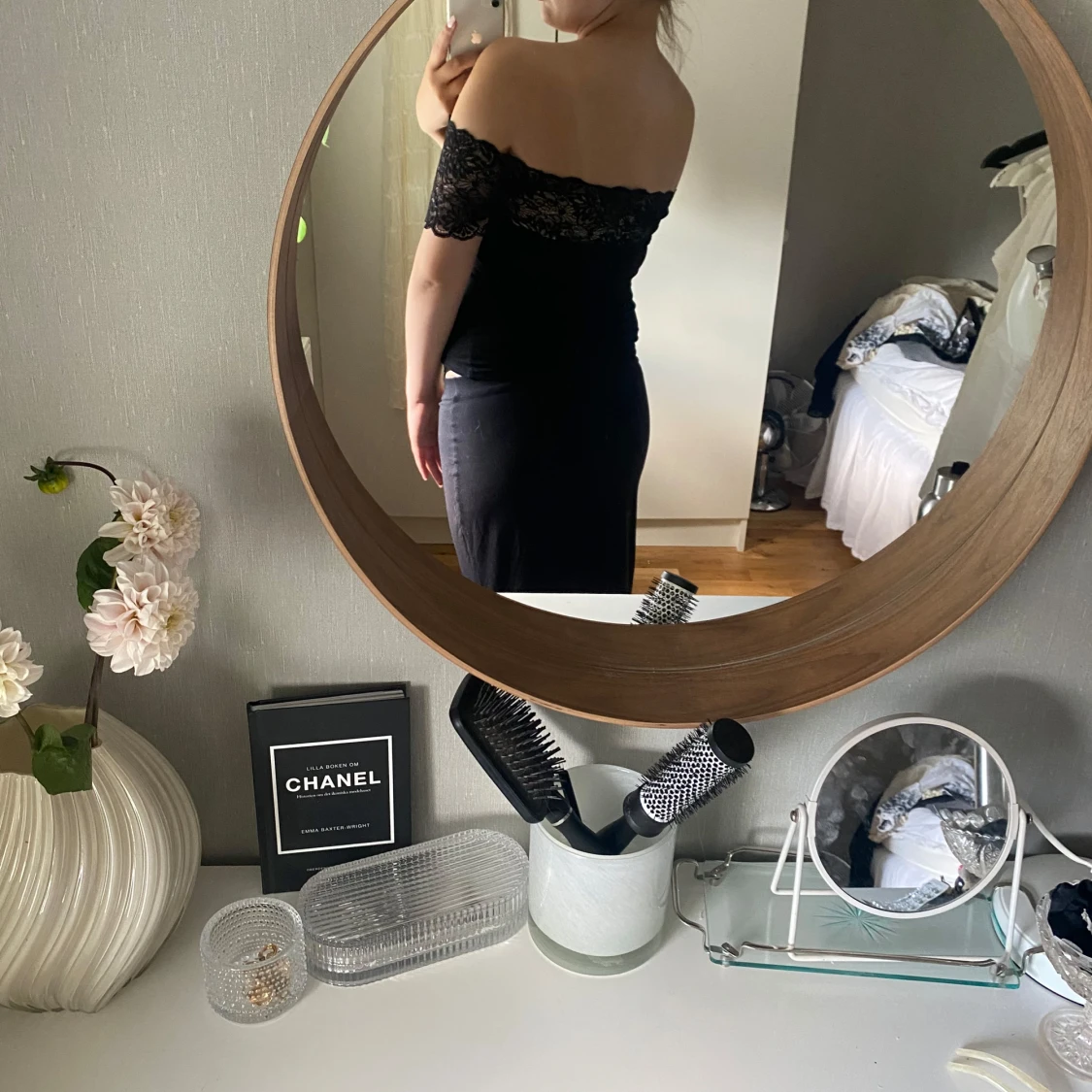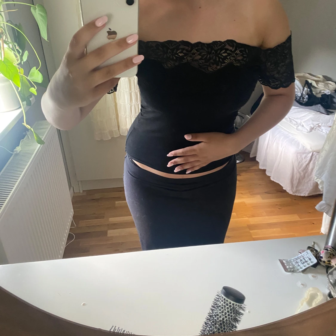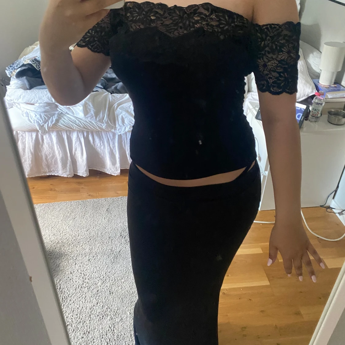 Svart offshoulder topp med spets