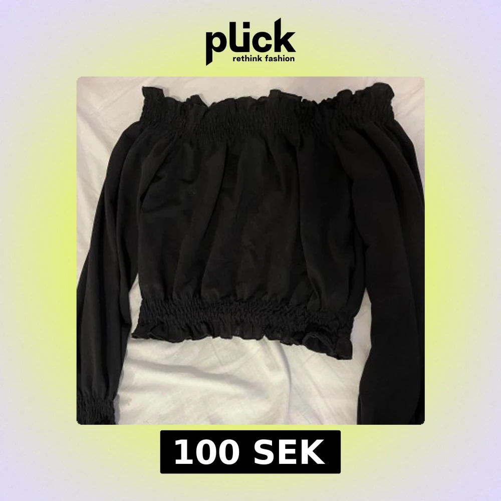 Trendig svart offshoulder topp med volangdetaljer vid halsringning, midja och ärmar. Resår upptill och nedtill för en bekväm passform.