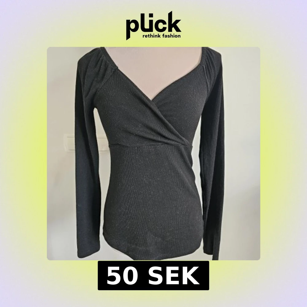 Svart ribbad omlottopp från New Look Maternity i stretchigt material. Toppen har lång ärm, v-ringning och figurnära passform. Perfekt för dig som vill ha en enkel men snygg bas i garderoben. Omlott.
