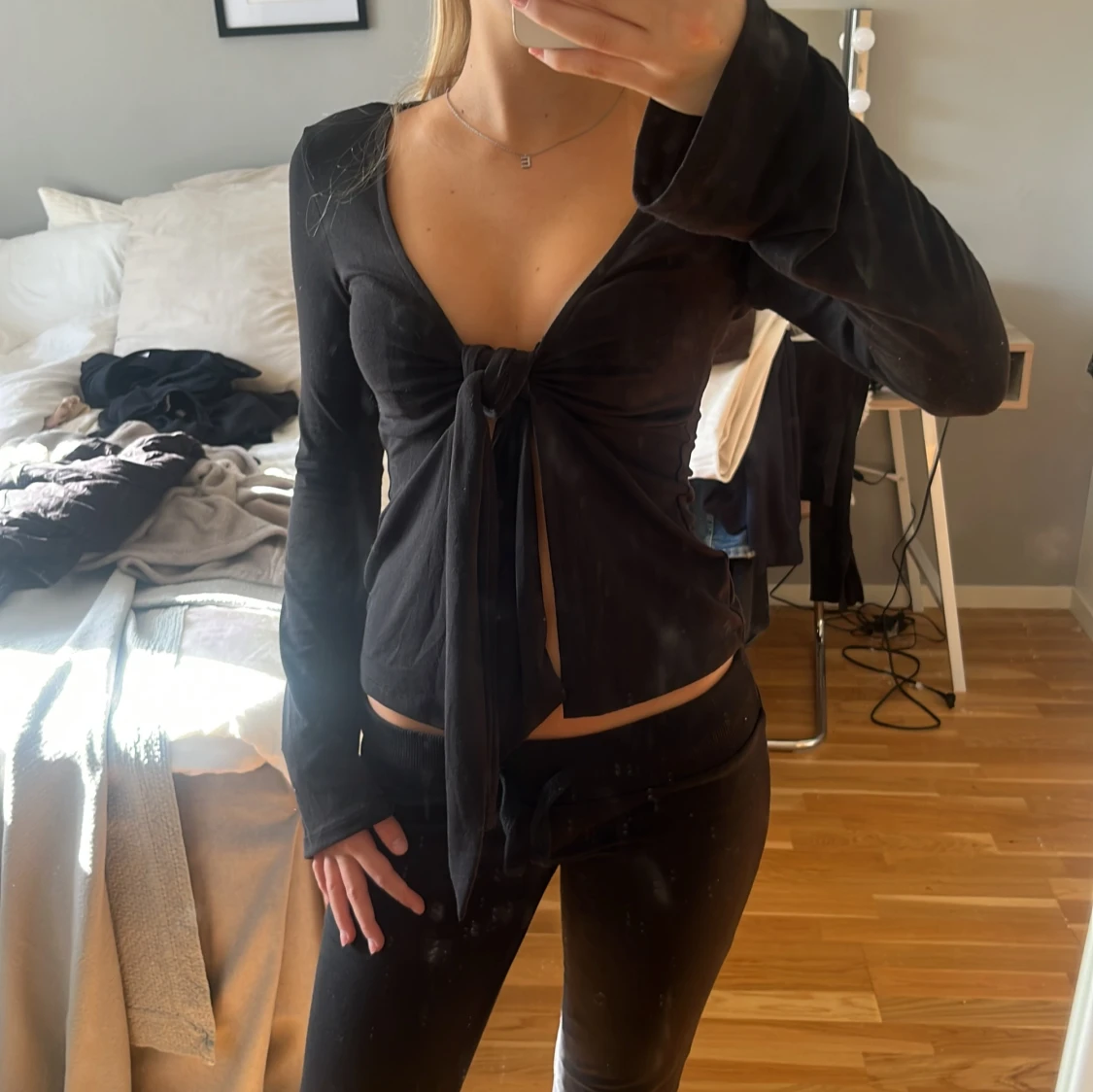 Svart omlottopp med knyt framtill