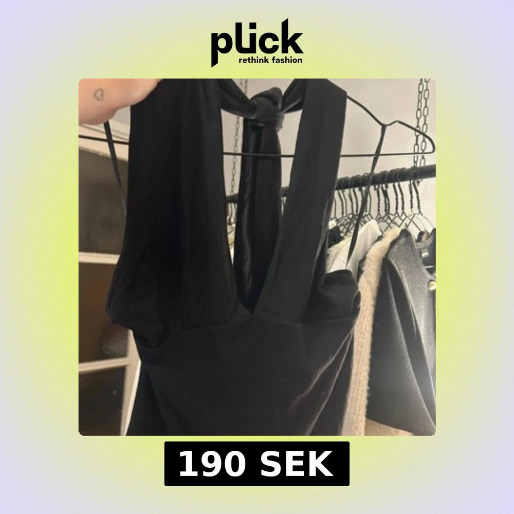 Svart omlottklänning från GinaTricot i mjukt material med snygg knytning i nacken. toppen har ärmlös design och djup v-ringning framtill, vilket ger en cool och modern look. Perfekt för dig som gillar minimalistisk stil och vill ha något enkelt men ändå trendigt.