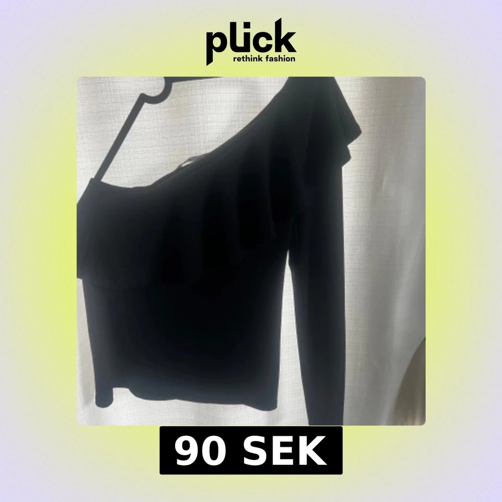 Snygg svart oneshoulder topp med volangdetalj från Gina. Tajt fit❤️