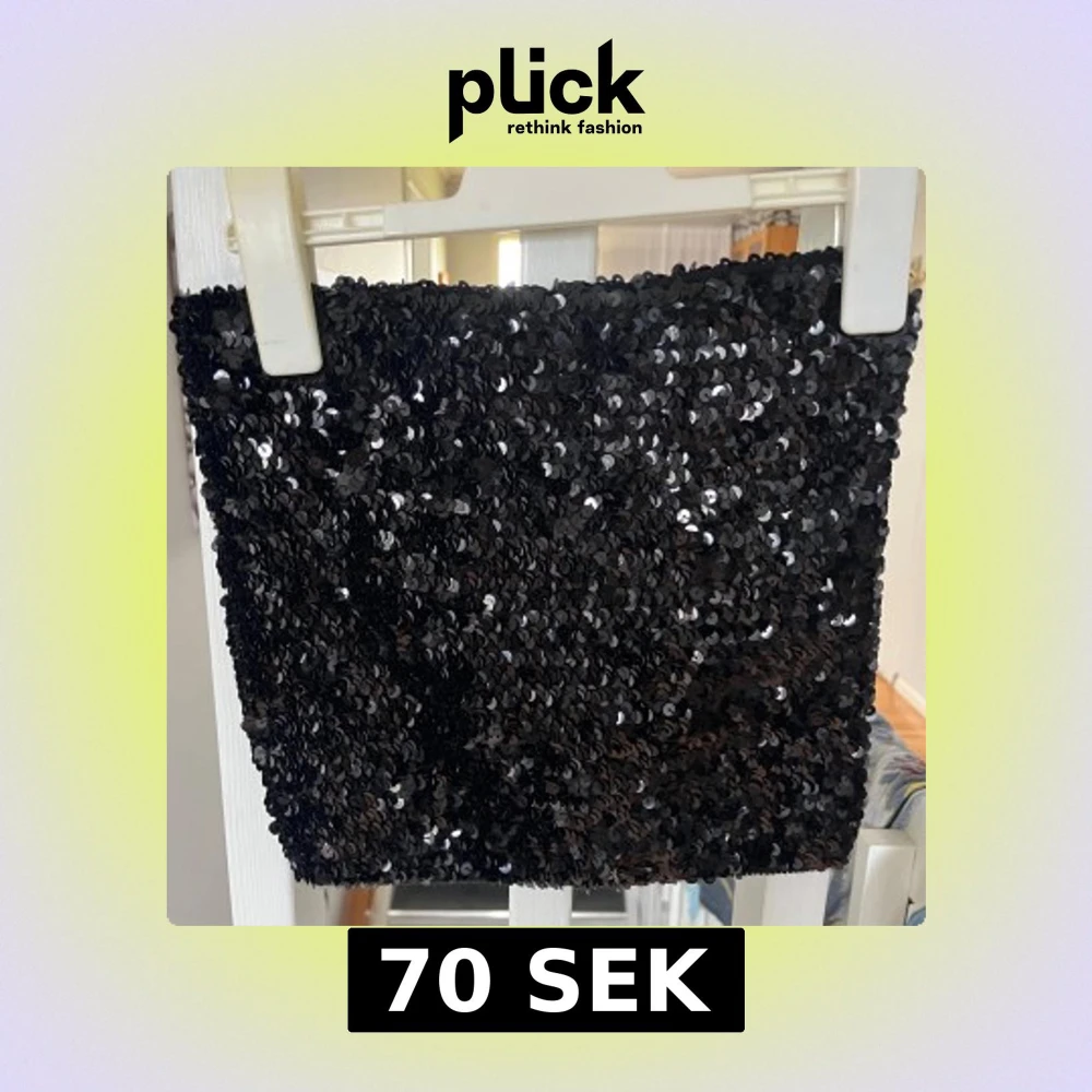 Snygg svart tubtopp täckt med glittrande paljetter. Perfekt för en utekväll eller fest. Toppen är ärmlös och har en tight passform som framhäver figuren.