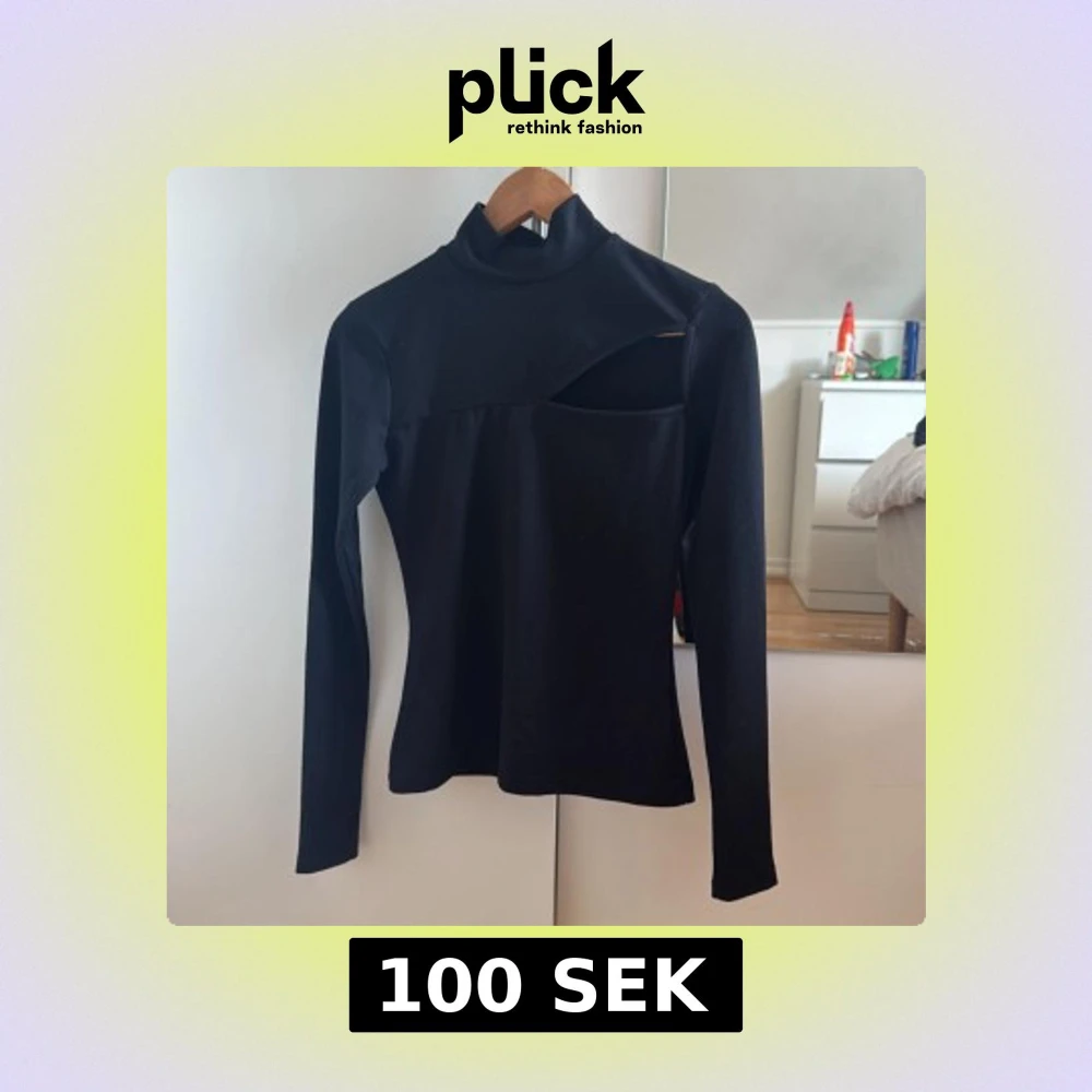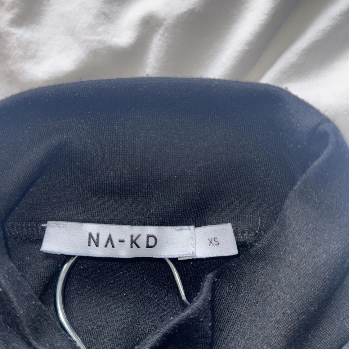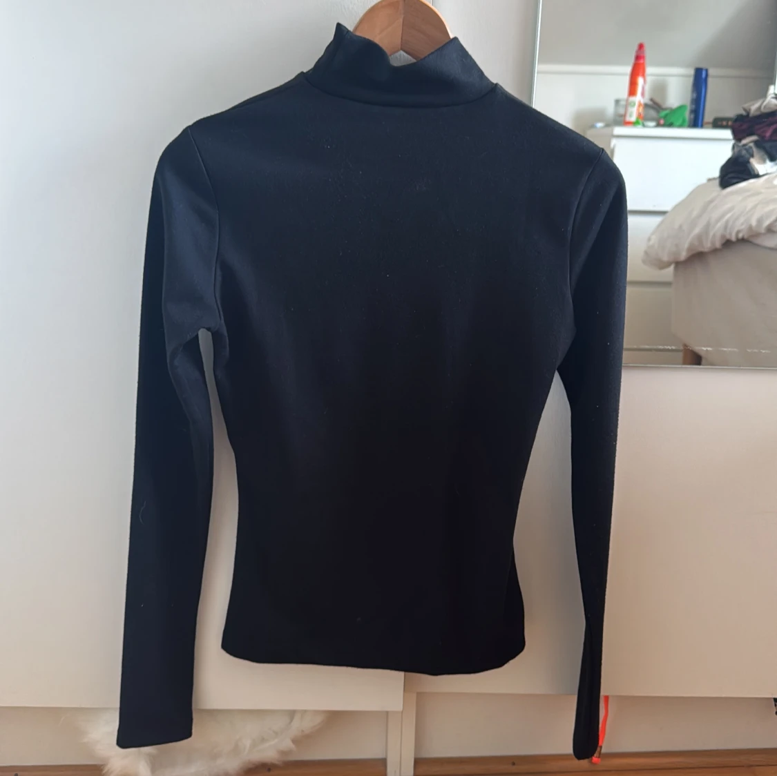 Svart långärmad polotopp från NA-KD i storlek XS. Toppen har en cool asymmetrisk cut-out vid axeln och är figurnära i modellen. Materialet är mjukt och stretchigt, troligtvis polyester. Perfekt för dig som gillar minimalistisk stil med en twist.