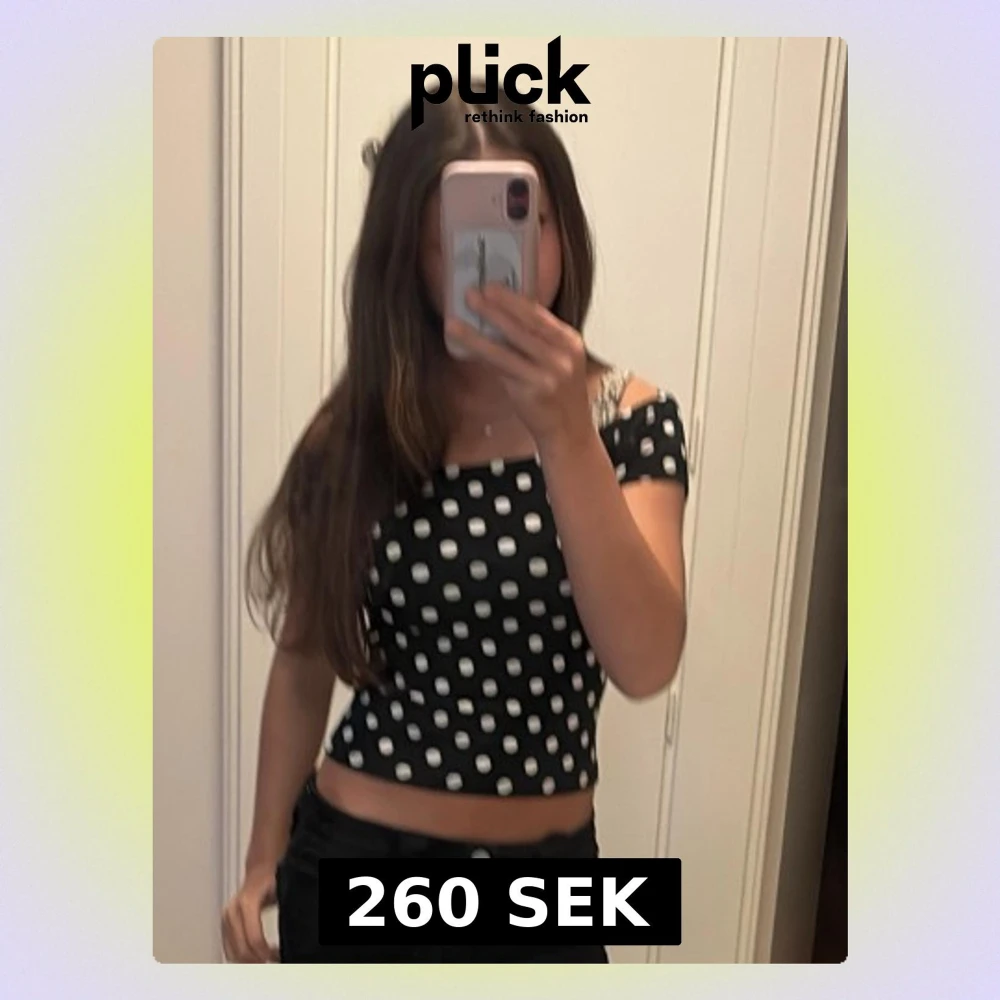 Säljer en svart croppad topp med vita prickar. Toppen har en tight passform och korta ärmar som sitter lite offshoulder. Materialet känns mjukt och stretchigt, perfekt till sommaren. Superfin att styla med höga jeans eller kjol!