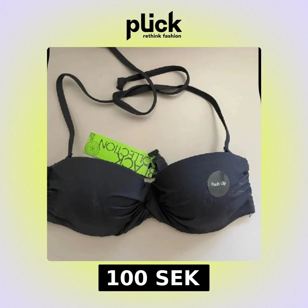 Svart push up bikiniöverdel från Lindex med avtagbara axelband och knäppning bak. Perfekt för stranden eller poolen, med vadderade kupor för extra lyft. Snygg och enkel design.