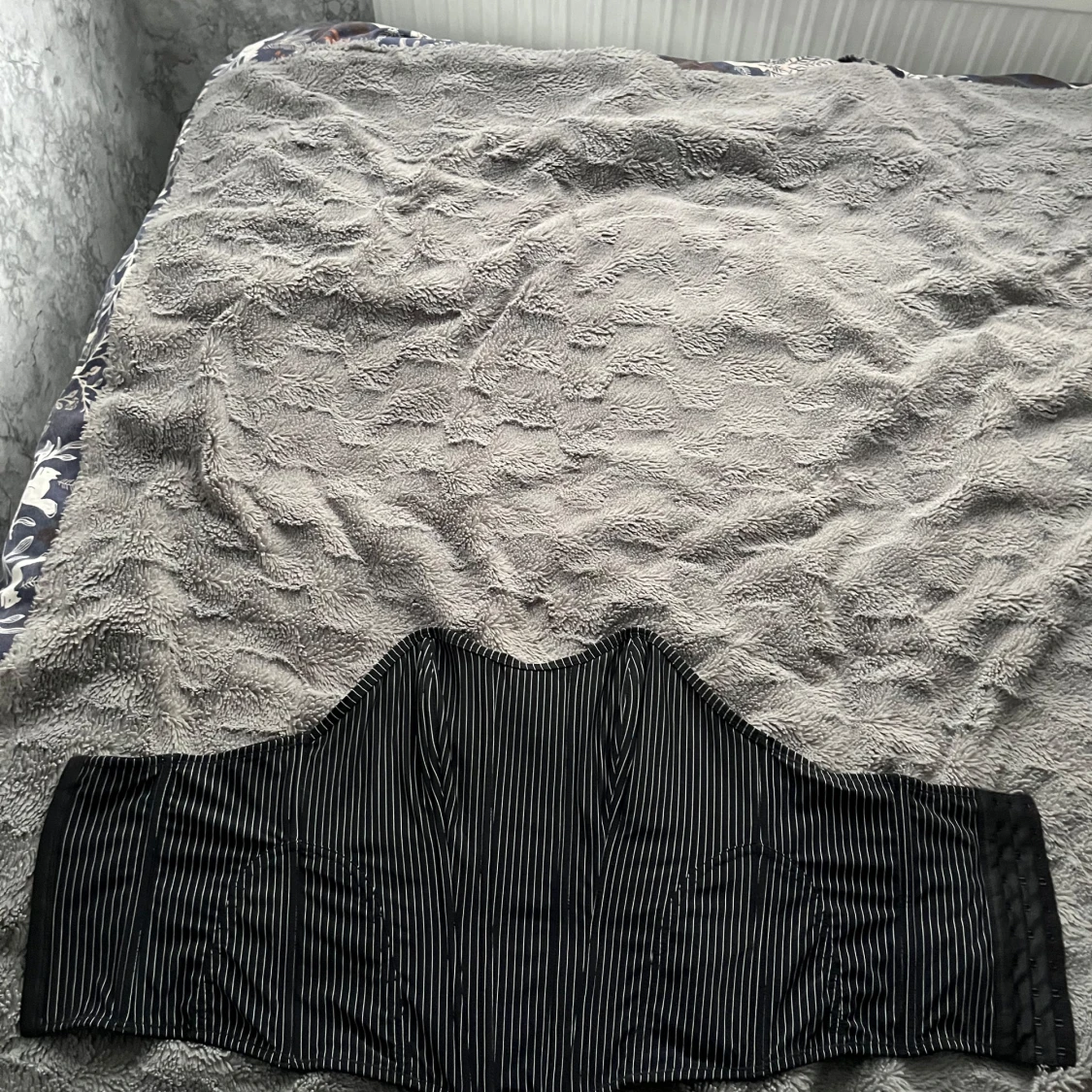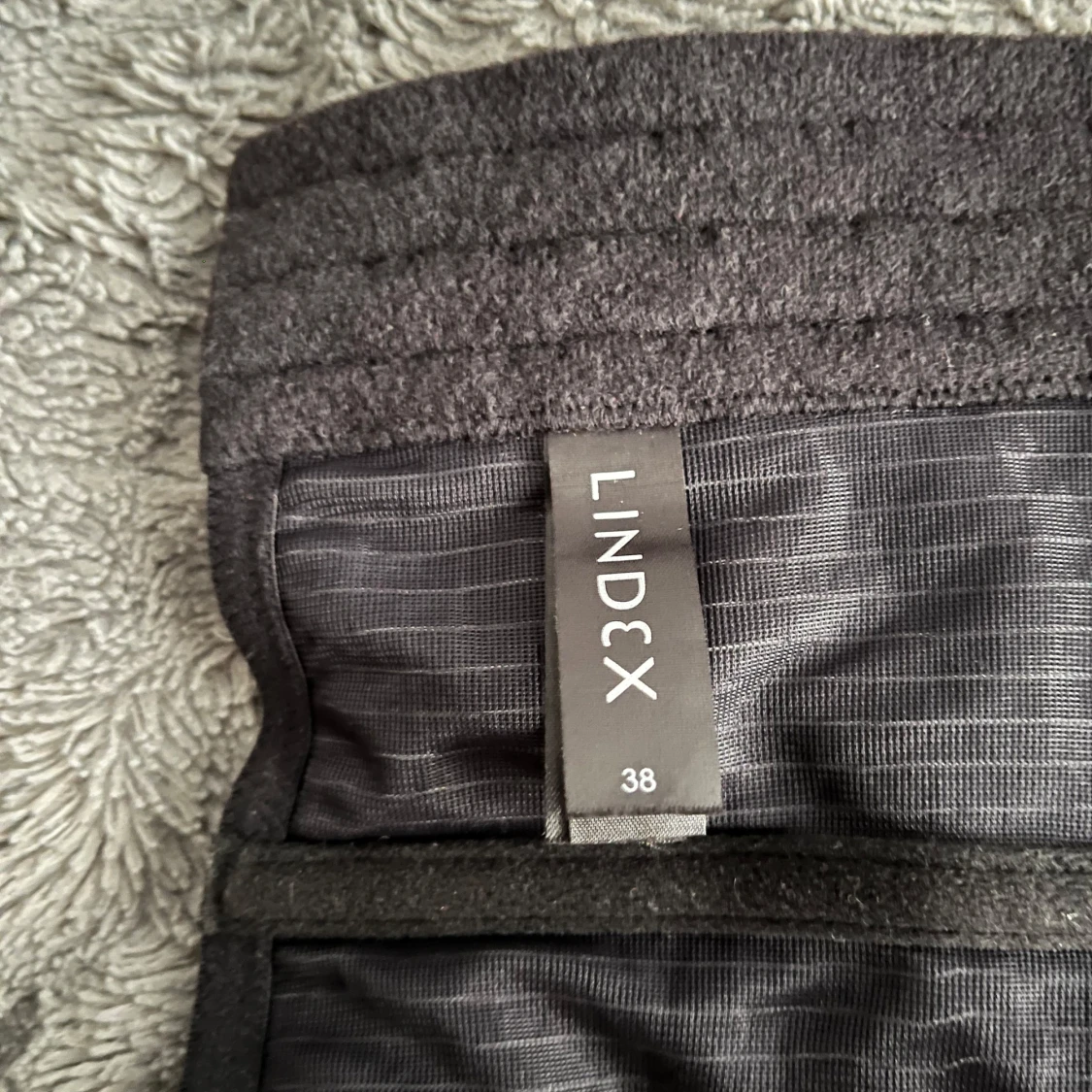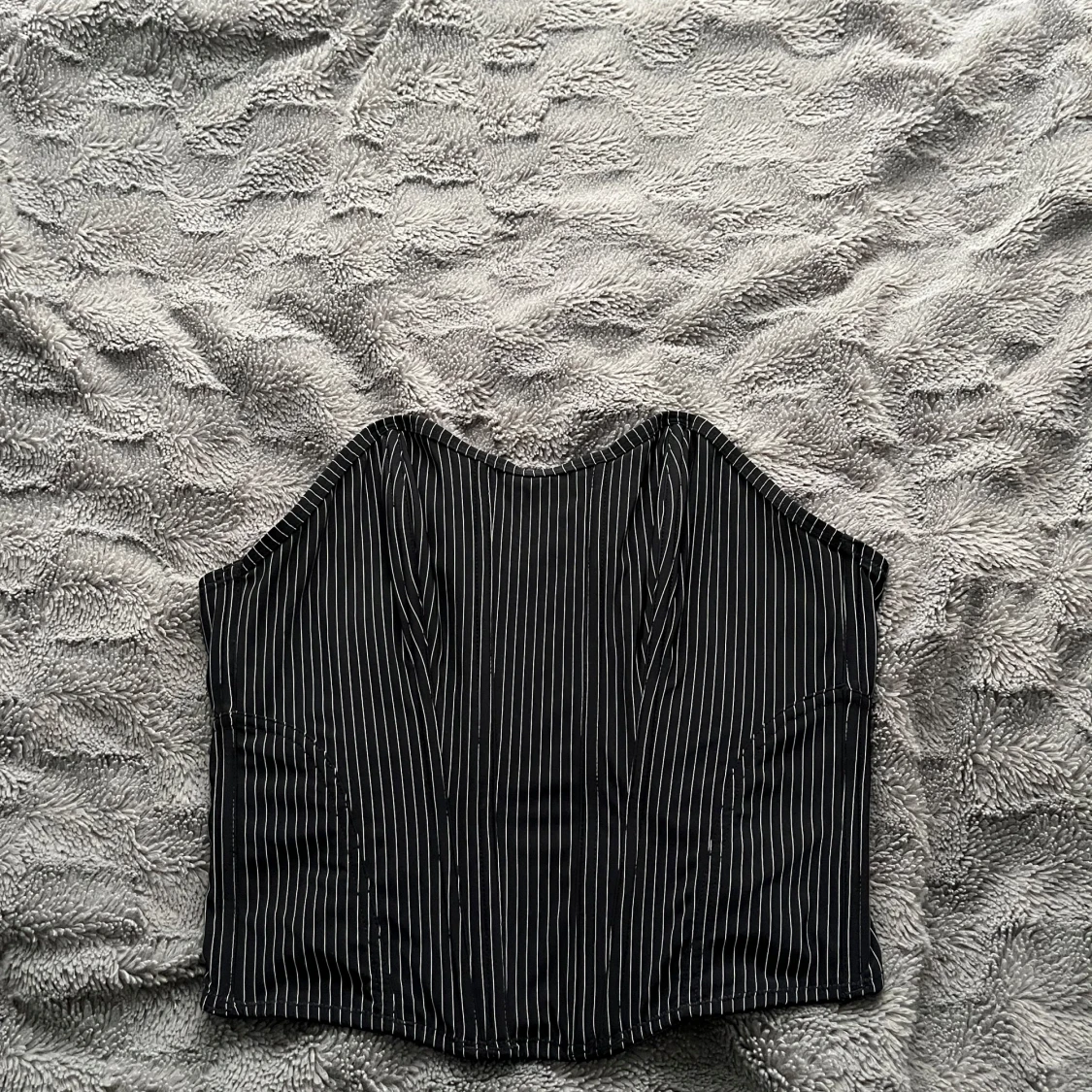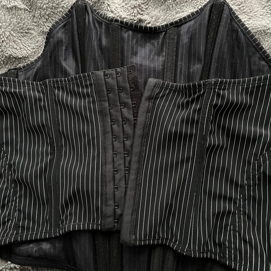 Säljer en svart korsett från Lindex med tunna vita ränder. Toppen har klassisk hakknäppning framtill och en snygg formad siluett. Materialet är slätt och känns bekvämt mot huden. Hör av dig för fler bilder eller frågor!