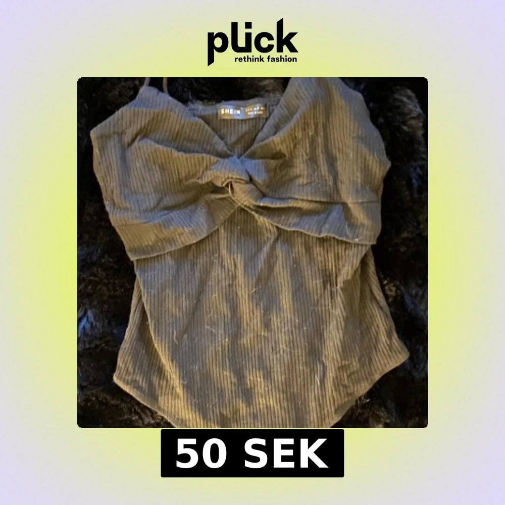 Snygg svart ribbad bodysuit från Shein med knytning framtill. Den har smala axelband och en åtsittande passform som framhäver figuren. Perfekt för en stilren look.