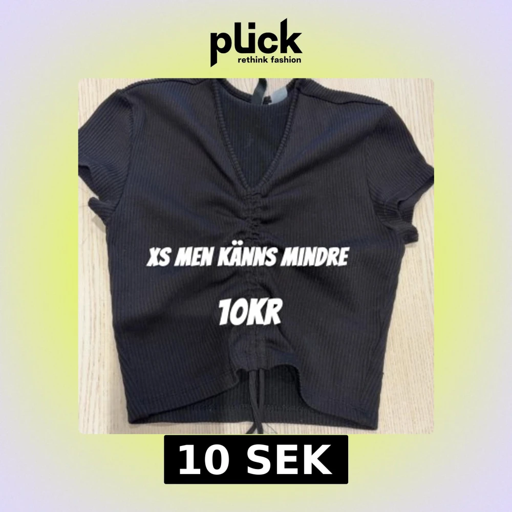 Säljer en svart ribbad croppad topp med v-ringning och snörning framtill. Toppen har korta ärmar och är i en tight passform som känns mindre än XS. Perfekt för dig som gillar trendiga detaljer och enkel stil.