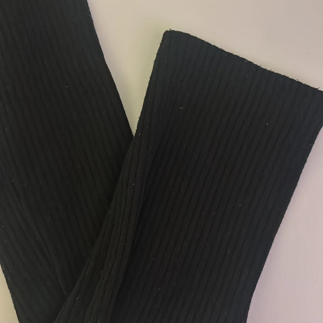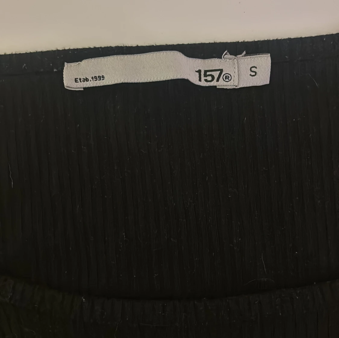 Svart långärmad topp från 157 med ribbad struktur och croppad passform. Toppen har en bred, rundad urringning och är tillverkad i ett mjukt, stretchigt material som sitter snyggt på kroppen. Perfekt att styla med jeans eller kjol.