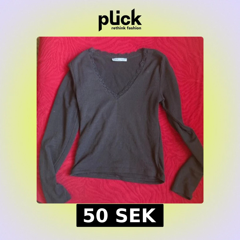 Svart ribbad långärmad topp från Karol basic med v-ringning och spetskant runt halsen. Storlek L men känns som en M.Toppen har en slim passform och är tillverkad i ett mjukt, stretchigt material som sitter snyggt på kroppen. Perfekt att styla med jeans eller kjol för en clean look.