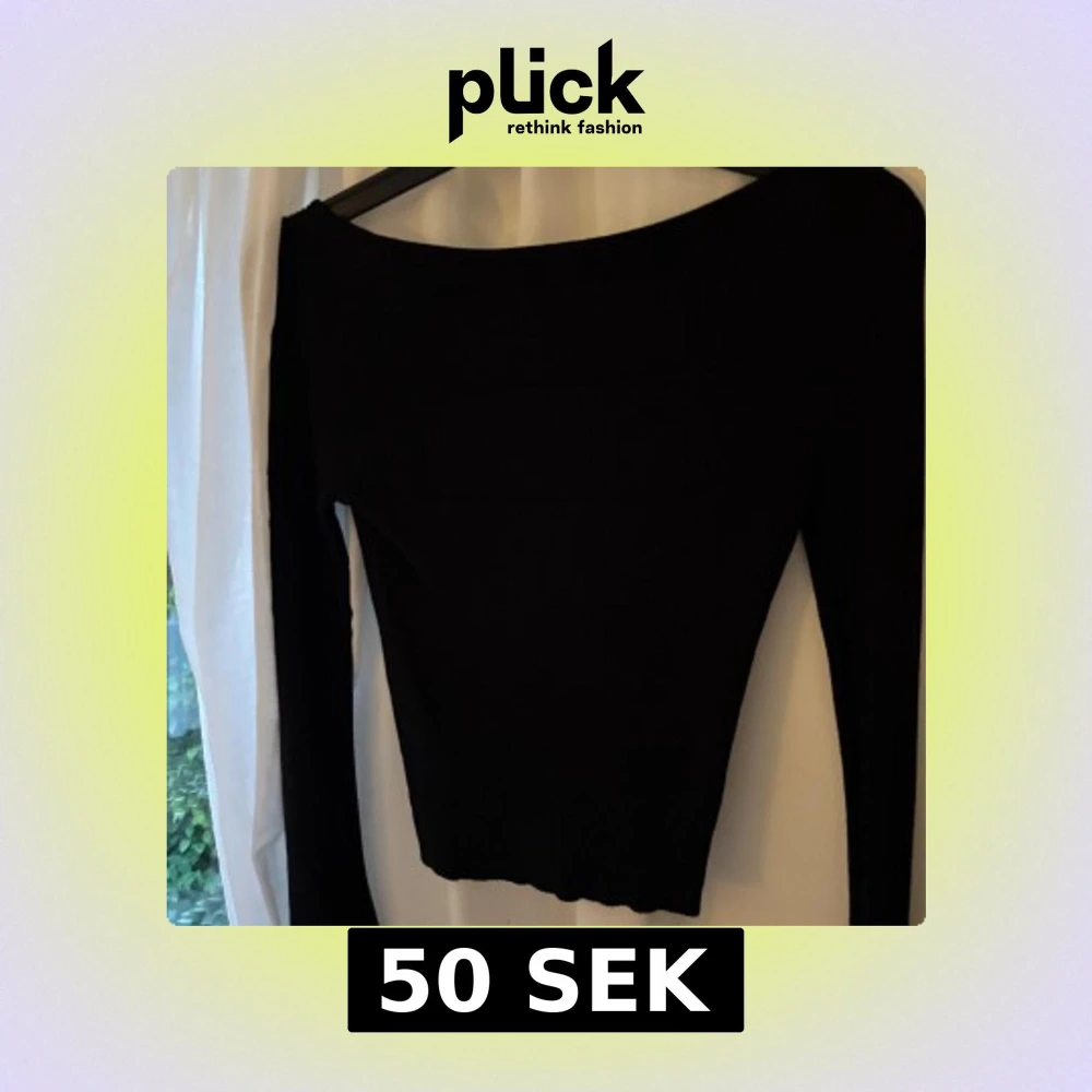 En svart, ribbad långärmad topp med bred urringning där bak. Toppen är tight i passformen och har en enkel, stilren design som passar till många olika outfits.