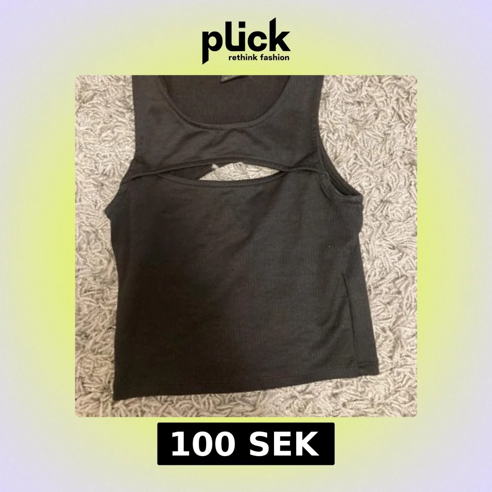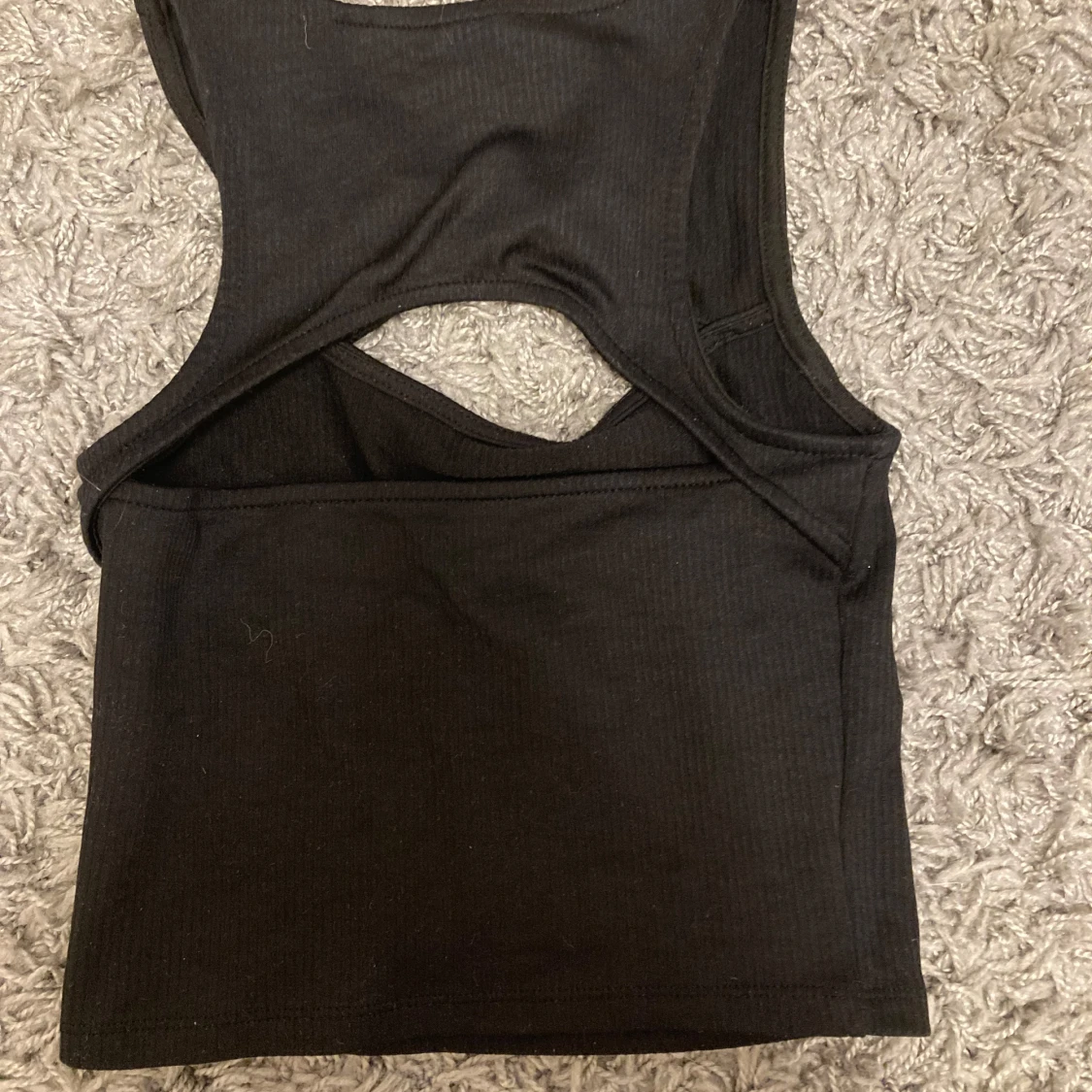 Snygg svart ribbad linnetopp med ett unikt utskuret mönster på ryggen. Perfekt för en stilren och modern look. Passar bra till både jeans och kjol.