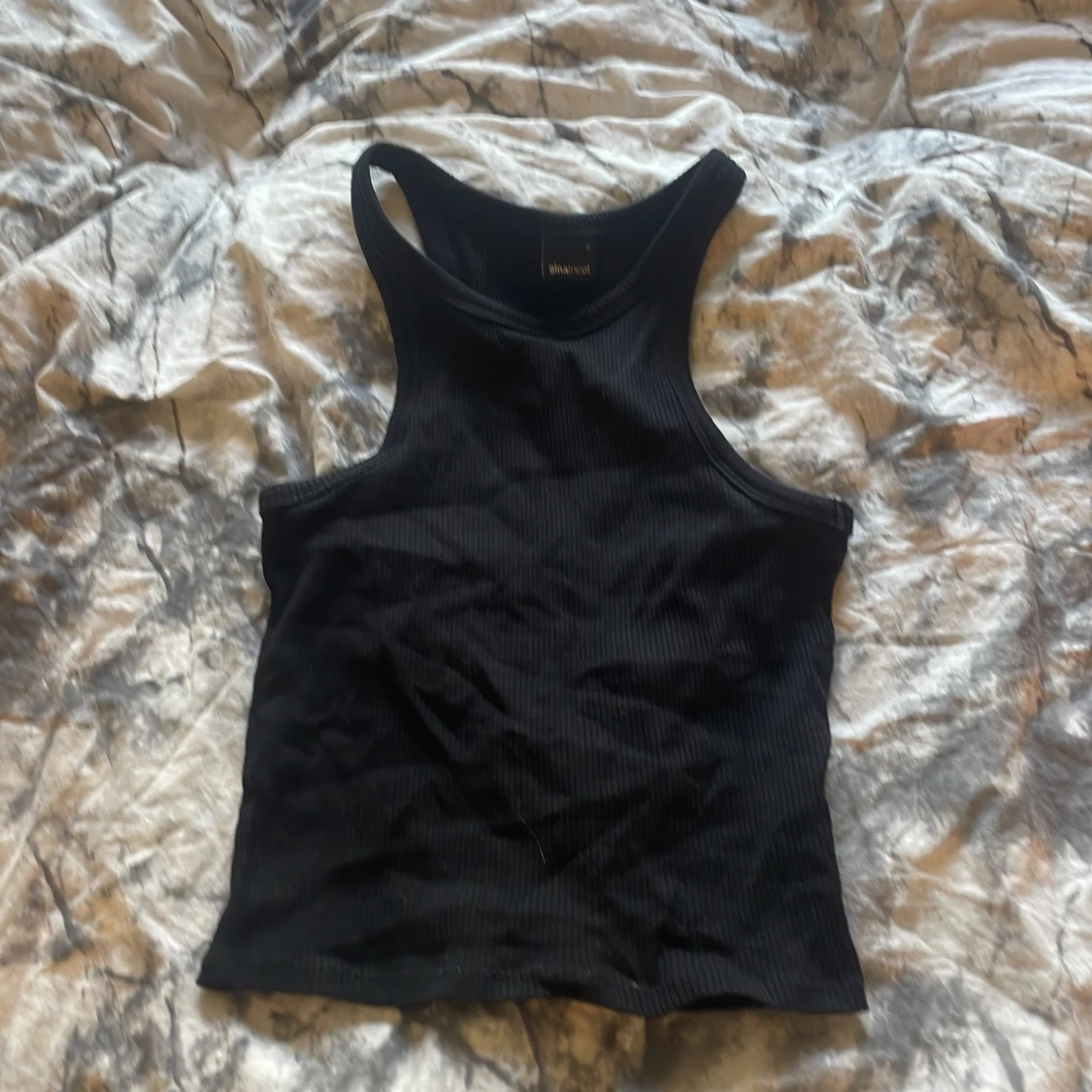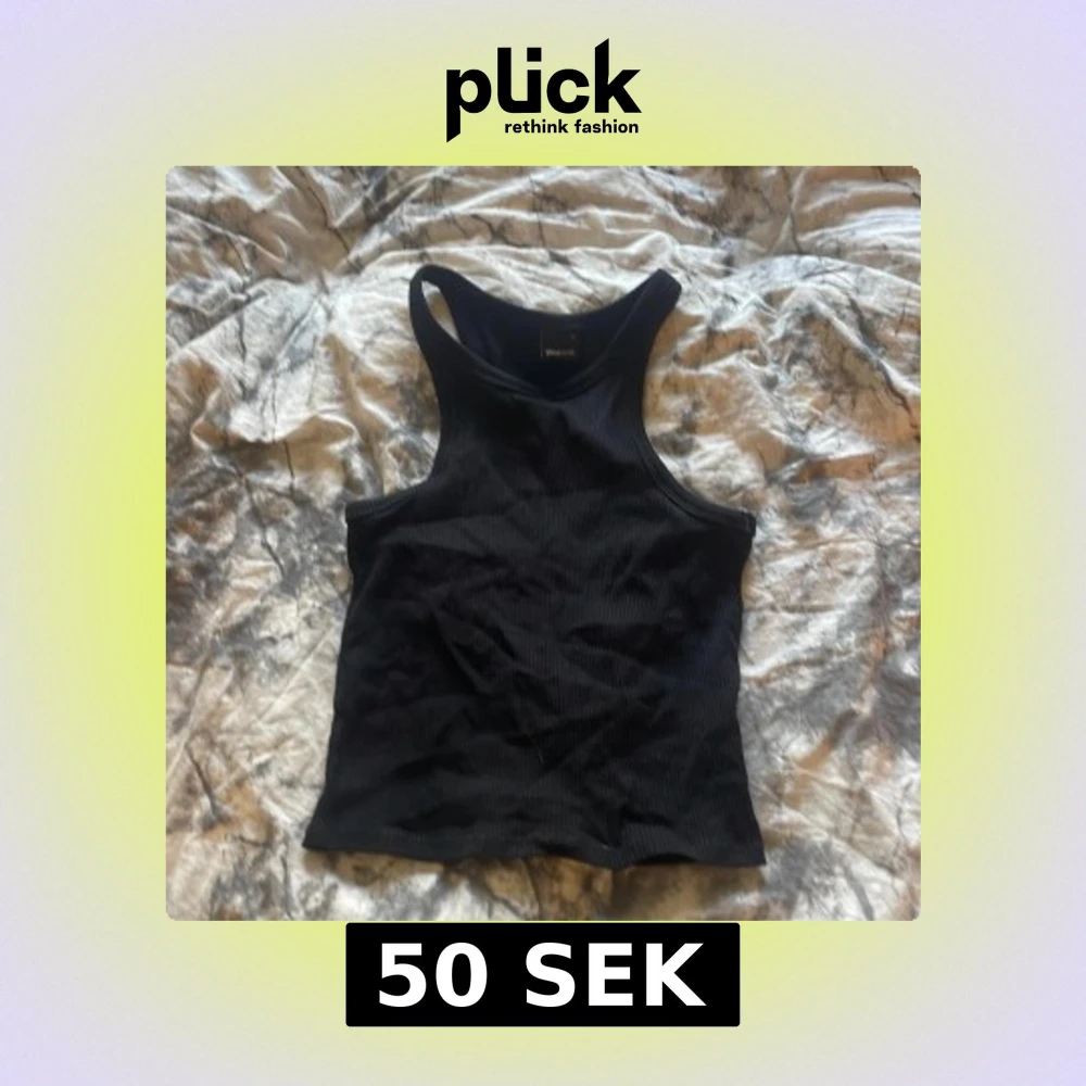 Säljer en svart ribbad linnetopp från Gina. Toppen har en sportig skärning med breda axelband och ärmlös design. Perfekt att matcha med jeans eller kjol för en enkel och stilren look.