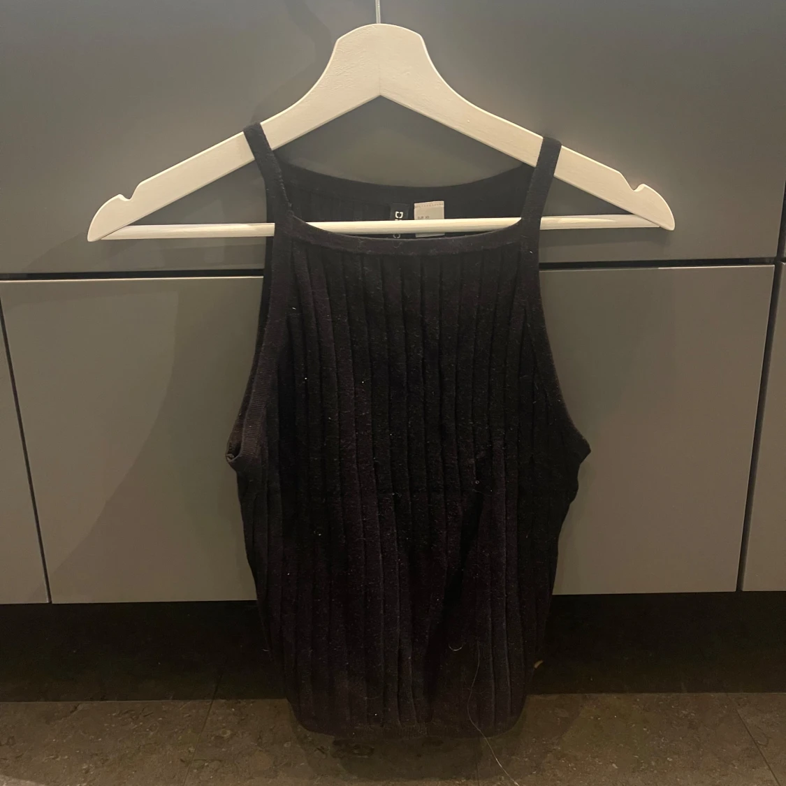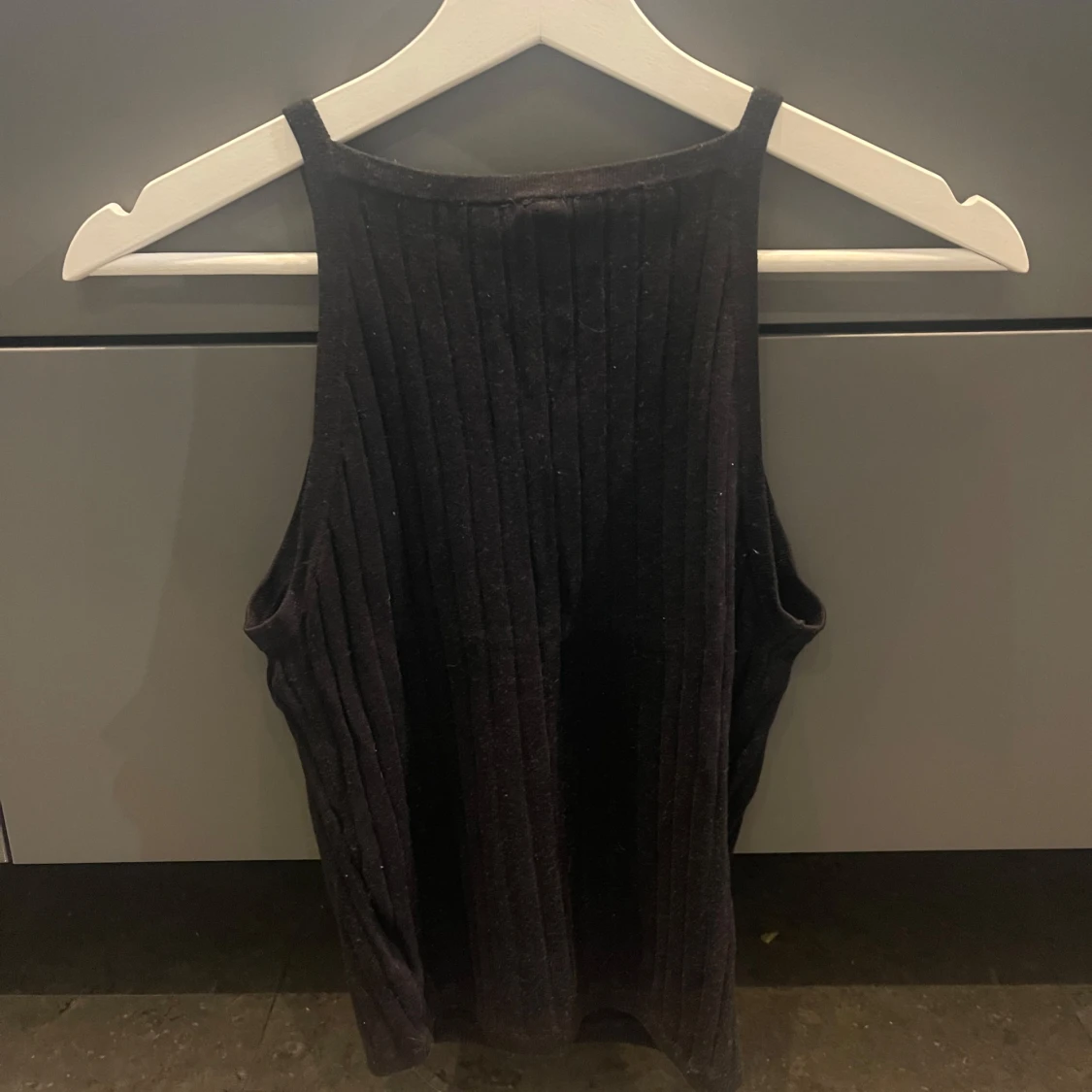 Snygg svart ribbad linnetopp med smala axelband. Väldigt skönt material, mycket bra skick!❤️