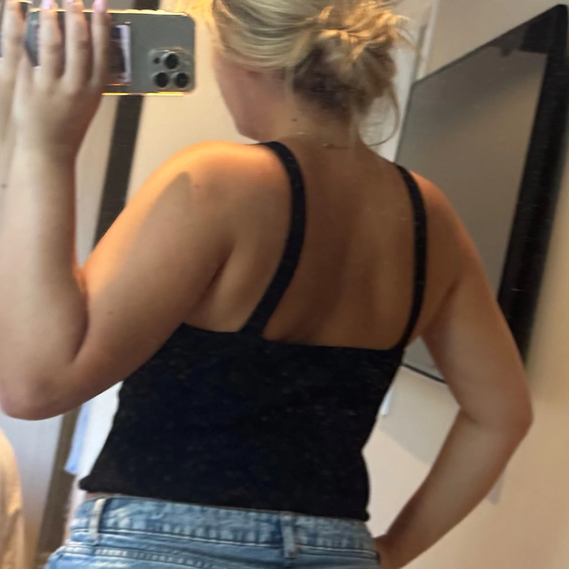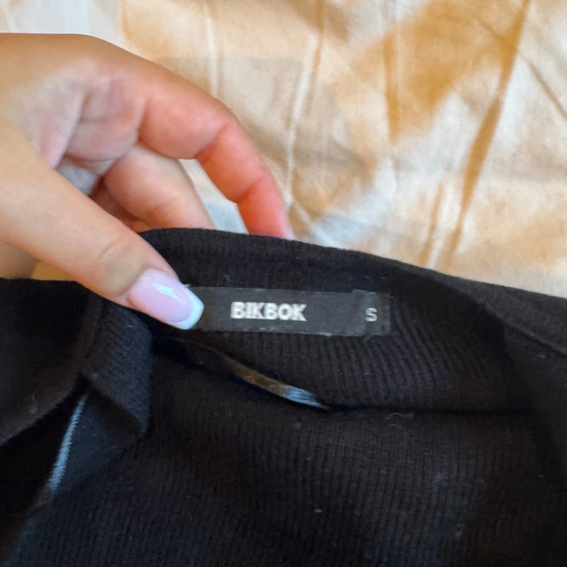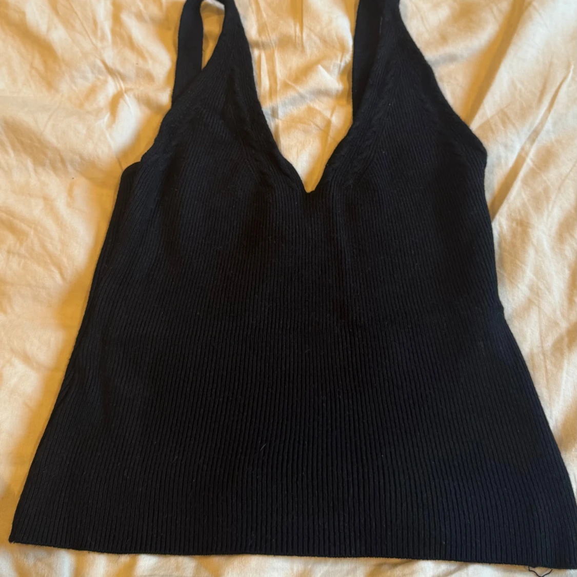 Svart ribbad skön linnetopp från BikBok med djup v-ringning och breda axelband. Toppen är croppad och har en tight passform som framhäver figuren. Perfekt att matcha med jeans eller kjol för en snygg och enkel look.