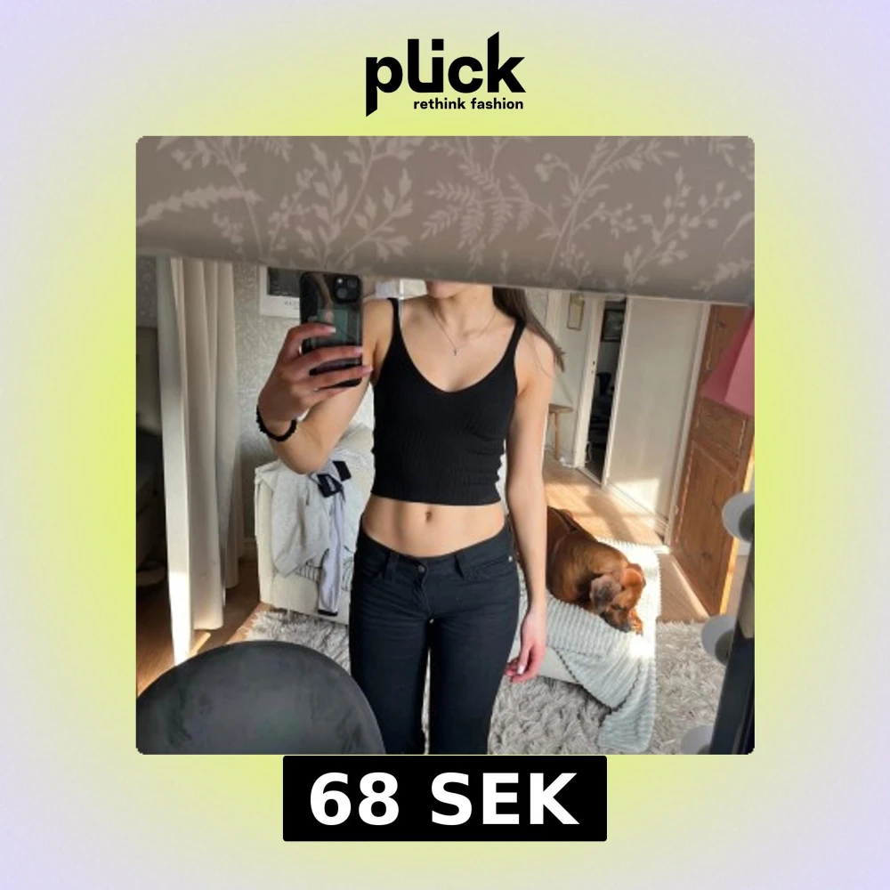 Säljer en svart ribbad linnetopp från H&M Divided. Toppen har smala axelband och en v-ringad design. Väldigt strechig! Säljer då den inte kommer till användning.