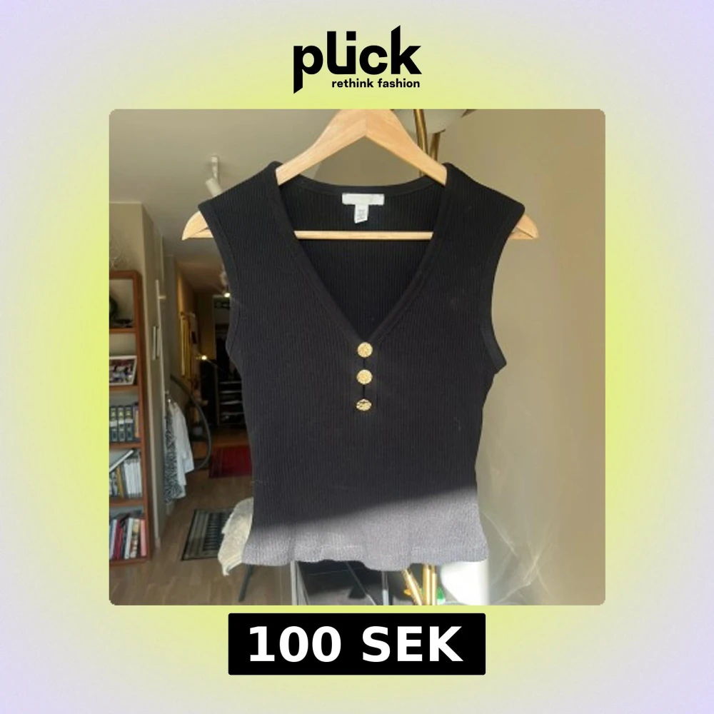 Svart ribbad linnetopp från H&M med v-ringning och guldknappar, i nyskick