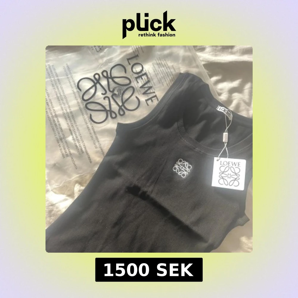 Säljer en svart ribbad linnetopp från Loewe med broderad vit logga framtill. Toppen är ärmlös och har en klassisk rund halsringning. Materialet är mjukt och stretchigt, perfekt för en clean och stilren look. Tag och originalpåse medföljer.